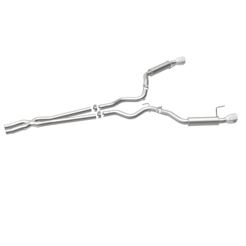 The Ford Mustang Performance Exhaust - Dual Split Rear - Magnaflow - Cat Back, Competition, 2.5in, Dual Split Polished 4.5in Tips - Polished - `15-`17 is designed to embolden the spirit of your Mustang, offering a powerful and distinctive edge to your driving experience. This exhaust system promises a commanding presence with its aggressive exterior exhaust note and polished finish.