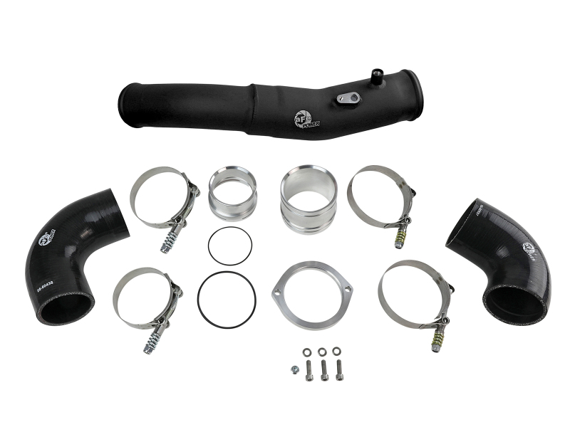 This high-quality intercooler tube features mandrel-bent aluminum tubing that minimizes pressure loss to maximize your vehicle’s performance. Equipped with durable stainless-steel, spring-loaded T-bolt clamps and heavy-duty 5-ply polyester reinforced silicone couplings, this kit ensures a reliable and leak-free connection. The tube includes a factory-style billet aluminum quick-connect adapter with an O-ring seal, which provides impressive strength and durability. Each piece is finished with a resilient wrinkle black powder coating and showcases a unique laser-etched aFe POWER logo for a custom look.