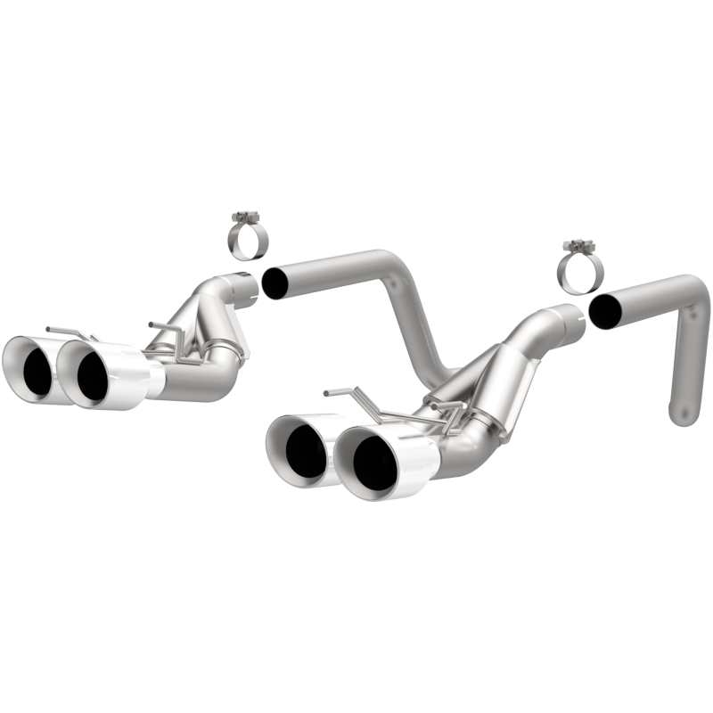 With the Chevrolet Corvette Performance Exhaust by MagnaFlow, your 6.2L Corvette will emit a signature exhaust note that's both bold and resonant. The axle-back design ensures a direct replacement of your vehicle’s existing exhaust components, offering Very Aggressive exterior and Aggressive interior sound levels. Engineered for performance, this exhaust system features fast-flowing mandrel-bent 2.5-inch diameter main piping, culminating in a Quad Center Rear exit with four 4-inch polished welded-on double-wall angle cut folded edge tips. Enhanced with advanced CNC precision robotic manufacturing techniques and extensive 3D scanning, this exhaust kit promises a perfect fit for easy installation.