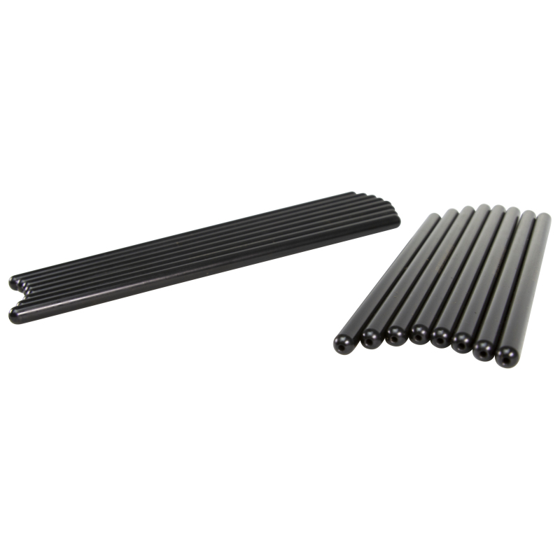 These pushrods are an integral part of the Hi-Tech Pushrod line by COMP Cams, engineered specifically for 2009 and newer Dodge 5.7L/6.4L HEMI engines. They are constructed as a single piece from .080" wall chromemoly tubing, renowned for its strength and resilience. The cryo-treatment enhances durability, ensuring that the pushrods stand up to the demands of high-performance driving. The precision-formed and reinforced 5/16" ball type ends ensure reliable performance, while the black oxide finish provides a sleek, corrosion-resistant surface. These pushrods are also laser-etched for easy identification and appeal.