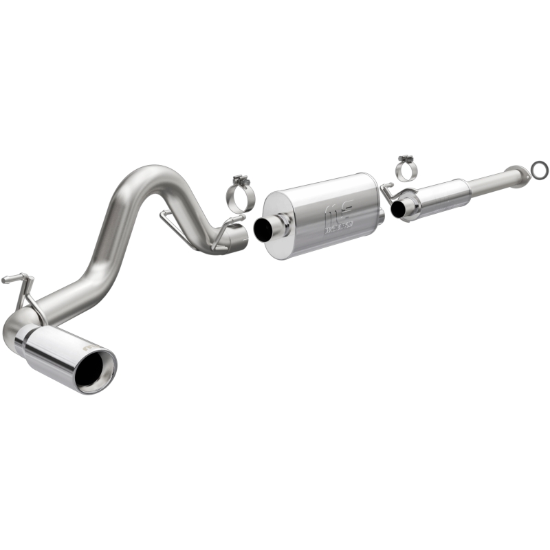 Delve into the specifics and advantages of using the Magnaflow Performance Exhaust System. It is engineered with fast-flowing, mandrel-bent 3-inch main piping and two straight-through mufflers. These components culminate in a sleek, polished 4-inch welded-on double-wall angle-cut rolled edge tip on the passenger side rear. This design not only enhances your vehicle’s auditory experience but also complements the visual aspect with its polished finish. By replacing the stock components from near the catalytic converter back, this exhaust system introduces moderate exterior and mild interior sound profiles, offering an enjoyable driving experience without overwhelming noise. A highlight of this system is its direct-fit design enabled by extensive 3D scanning, making it accessible and convenient for self-installation.