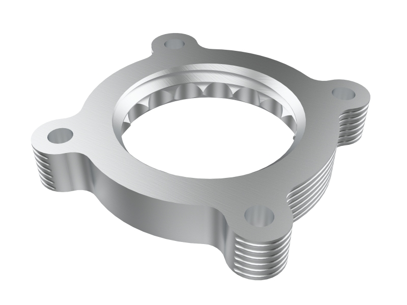 The Serrated/Helix combination design creates intake turbulence in the combustion chamber. This turbulence breaks up the fuel which creates a more complete combustion cycle increasing horsepower, torque and improving throttle response. The Serrated/Helix combination design also reduces intake whistle that occurs with Helix only designs. All Silver Bullet Throttle Body Spacers are constructed from 6061-T6 billet aluminum precision machined for light weight, high strength and perfect fit and finish. Complete with an orange anodized finish, the Silver Bullet Throttle Body Spacer will stand out as a per engine bay. This Silver Bullet throttle body spacer uses all factory mounting locations providing stability and a hassle-free installation.. Silver Bullet throttle body spacers create turbulence in the air flow at the point just before entry to the engine – increasing performance, as well as improving throttle response.. Unique Serrated/Helix Entry Design Creates Turbulence and Reduces Whistle Sound. Silver Bullet Throttle Body Spacer Kit Subaru Crosstrek 21-25 H4-2.5L. aFe 21-23 Subaru Crosstrek Silver Bullet Throttle Body Spacer Kit. Increases Air Speed, Improving Performance and Throttle Response. CNC-Machined from 6061-T6 Billet Aluminum. Silver Bullet Throttle Body Spacer Kit. Throttle Body Spacer