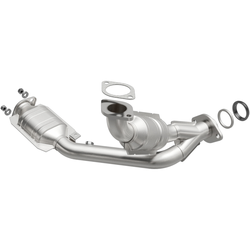 Keep the check engine light off with MagnaFlow HM Grade Federal/EPA Compliant Direct-Fit Catalytic Converter 24233. With features including free-flowing mandrel-bent tubing and highly corrosion resistant stainless steel construction, easily install this spun body converter yourself using the proper tools, no cutting or welding required. MagnaFlow's state-of-the-art metrology department uses the latest 3D scanning systems during research and development, so you can be confident that your new part will fit and function like the original equipment. By replicating the OE spun body design, the single laser fusion weld greatly reduces the possibility of a leak, and our compact, low-mass design also allows for greater thermal efficiency. This direct-fit catalytic converter is designed specifically for the 2001-2002 Mitsubishi Montero. The included gaskets & hardware reduce the possibility of a leaking seal while avoiding the need to reuse corroded factory parts for installation. This replacement part is designed to meet or exceed Federal emissions requirements set forth by the EPA, complying with legal standards for OBDII Federally registered vehicles with Federal/EPA Emission systems.. Your trusted source for EPA-compliant catalytic converters, providing assurance of genuine compliance while delivering quality that will last. Mandrel bent tubing retains OEM-like design and geometry, ensuring smooth exhaust flow for peak fuel economy and engine operation. High Strength 16 Gauge 409 Stainless Steel Tubing For Exceptional Corrosion Resistance And Maximum Service Life. Expertly crafted to replicate OEM-like flow dynamics, maintaining factory performance and fuel efficiency. Expertly Crafted To Replicate Oem-Like Flow Dynamics/Maintaining Factory Performance And Fuel Efficiency. Precision stamped collector design for optimal exhaust flow, engine efficiency, and fuel economy. Precision Stamped Collector Design For Optimal Exhaust Flow/Engine Efficiency And Fuel Economy. Simplifies Installation With Essential Gaskets And Hardware Being Included In The Box. Exhaust,MagnaFlow,Catalytic Convertor,Cadillac Convertor,Convertor,Emissions. Not legal for sale or installation in California; Colorado or New York.. Not legal for sale or installation in California, Colorado or New York.. Your Trusted Source For EPA-Compliant Catalytic Converters. Mandrel Bent Tubing Retains Oem-Like Design And Geometry. HM Grade Direct-Fit Catalytic Converter - Mitsubishi. HM Grade Direct-Fit Catalytic Converter-Mitsubishi. Magnaflow HM Grade Direct-Fit Catalytic Converter. MagnaFlow Conv DF 01-02 Mitsu Montero 3.5L. HM Grade Direct-Fit Catalytic Converter. Durable 308 Stainless Steel Mig Welds. Catalytic Converter. CatConverter. HM Grade. 25173701
