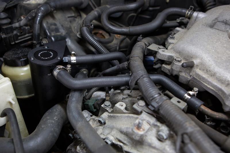 The VQ35DE has long since been the workhorse under the hood of plenty of Nissan and Infiniti products, so give those intake components the protection they deserve with the Mishimoto 2003-2006 Nissan 350Z and 2004-2007 Infiniti G35 Direct Fit Catch Can Kit. These cars were built to be driven to their limits, but the unfortunate side effect of those harsh driving conditions is blow-by., which makes its way back through the intake system, and can build carbon on these components, reducing the power and efficiency of your G or Z. Our complete kit utilizes a single 6061 aluminum tall catch can that mounts in line with the VQ35DE?s PCV system using chemical resistant, OEM style flat black hoses and CNC-machined aluminum fittings. Our can is secured with a sturdy, application specific bracket which also doubles as a new mount for your Nissan or Infiniti?s power steering reservoir. Where our 350Z and G35 Direct Fit Catch Can Kit adds a layer of stylish protection to your engine bay, It's what?s on the inside of the can that counts. Our tried and true internal baffle is specifically designed to aid in the condensation and collection of oil droplets and fuel vapors passing through the PCV system. We've also incorporated internal air diverters to ensure a smooth and constant flow of the PCV pressure through our catch can. As an added line of defense, each one of our catch cans has a 50-micron bronze filter installed to trap any potential rogue oil droplets from escaping into the return line. Each one of our cans are sealed with Viton O-rings to ensure what?s collected in our catch can stays in the catch can. Finally, every one of our 2003-2006 Nissan 350Z and 2004-2007 Infiniti G35 Direct Fit Catch Can Kits is shipped with the Mishimoto Lifetime Warranty. Our catch cans are different from most air-oil-separator (AOS) systems on a few levels. First, our catch cans are not heated. This means that all of the blow-by is able to condense in the can, inclu. Single can mounts in line with the PCV system to separate oil from air using a 50-micron bronze filter. Direct-Fit Catch Can Kit, PCV Side fits Nissan 350Z 2003-2006 / Infiniti G35 2004-2007 VQ35DE. Mishimoto 03-06 Nissan 350Z / 04-07 Infiniti G35 VQ35DE PCV-Side Direct Fit Catch Can Kit. Nissan 350Z 2003-2006 / Infiniti G35 2004-2007 VQ35DE Direct Fit Catch Can Kit. Catch can has an extra large 7.5oz capacity for longer servicing intervals. Mishimoto MMBCC-350Z-03PBE. Engine Oil Catch Can Kit. Installs in under 1 hour. Oil Catch Can Kit