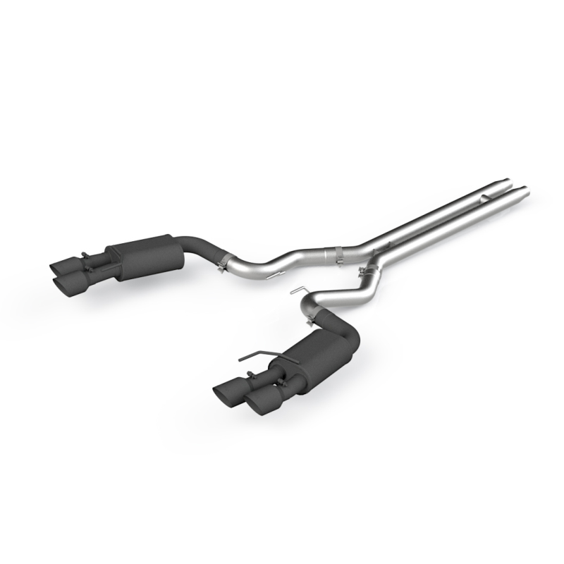 Manufactured using heavy-gauge Aluminized Steel tubing throughout the whole system, everything but the tailpipe and tip are left as mill-finish steel for better resistance of damage under your vehicle. This material can be a great choice for you if you live in a dry climate that doesn’t see much precipitation. All of the tubing is mandrel bent for maximum exhaust flow. Mandrel bending ensures no rippling in the bends. The end result is that it gives you more fresh air inside your engine’s cylinders, allowing it to produce more power and improve vehicle performance and longevity. The black powder coating features a 1-year warranty against factory defects, and the remaining parts feature an industry leading 3-year warranty. MBRP, Stand out from the crowd with a performance exhaust system that sounds great.. STYLE THATS WORTH A SECOND LOOK - ARMOR BLK Series exhaust systems crank your vehicle's style dial to 11. The ARMOR BLK series offers the same performance as the other series with an engineered, high-heat black powdercoating on the tailpipe(s) and tip(s).Manufactured using heavy-gauge Aluminized Steel tubing throughout the whole system, everything but the tailpipe and tip are left as mill-finish steel for better resistance of damage under your vehicle. This material can be a great choice for you if you live in a dry climate that doesn't see much precipitation. All of the tubing is mandrel bent for maximum exhaust flow. Mandrel bending ensures no rippling in the bends. The end result is that it gives you more fresh air inside your engine's cylinders, allowing it to produce more power and improve vehicle performance and longevity. The black powder coating features a 1-year warranty against factory defects, and the remaining parts feature an industry leading 3-year warranty. MBRP, Stand out from the crowd with a performance exhaust system that sounds great.. 4in. Outside Diameter Tips Included "Non Active Exhaust only". Active Exhaust Function NOT Retained on Factory Equipped Vehicles. Pipe Modifications May Be Required For Installation On Convertible Models.. Armor BLK Cat Back Exhaust System; 3 in.; Incl. H-Pipe/Extension Pipes/Mufflers/Hardware/Quad 4 in. OD Dual Wall Tips; Dual Rear Exit; Street Version; Black Coated;. Black Coated. Fully Sealed Seams for Rust Resistance. Bolt-on Installation. Street Version. MBRP Signature Styling and Sound.. MBRP 18-19 Ford Mustang GT 5.0 3in Dual Split Rear Cat Back w/ Quad 4in Dual Wall Tips- Black Coated. 3in. Cat-Back. Dual Rear Exit. Quad Tips. Street Version. Black Coated Aluminized Steel.. 3in. Cat-Back. Dual Rear Exit. Quad Tips. Street Version. BLK. Armor BLK Cat Back Exhaust System. Stainless Steel Tips Are Included. Improved Torque And Horsepower. Lower Exhaust Gas Temperatures. 3 Year Warranty On The System. 1 Year Warranty On The Finish. MBRP Exhaust Cat-Back System. Increased Throttle Response. Utilizes OEM Hangers. Mellow Exhaust Note. Exhaust System Kit. Cat-Back System. Bolt On Design