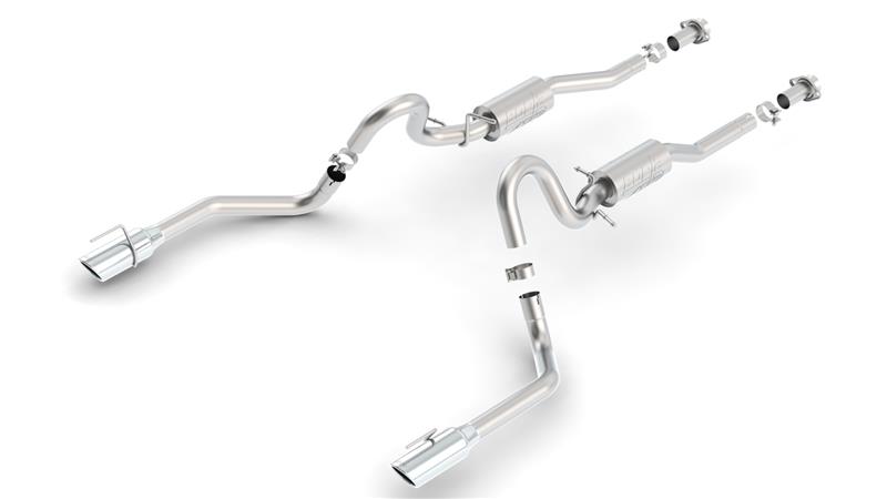 For over 4 decades, BORLA® Exhaust has been the choice of Mustang experts, from the Cobra-R SVT Mustang to the Ford GT. Major players in the racing industry and leading tuners from Roush, Steeda, Saleen and Ford Racing to the Shelby 427 Cobra have relied on BORLA®. BORLA®'S experience and advance engineering produced the aggressive ATAK® exhaust with outstanding flow numbers that generates great power enhancements. These attributes, coupled with an aggressive sound of power and single 4" round bright chrome on T-304 stainless steel tips on each tail pipe, proclaim this 2.5" Cat-Back™ system is all business. Airflow management and exhaust engineering is a science with which BORLA® has more experience than anyone in the exhaust aftermarket. The performance matches the famous BORLA® systems of the past but with a unique muffler and exhaust configuration canceling additional high frequency sound waves delivering a significant increase in exhaust flow CFM from the factory system which, as most engine builders will confirm, accounts for the dramatic power improvements. Perhaps more importantly, this added flow maximizes performance for other aftermarket enhancements installed on the Mustang because all BORLA® exhaust products are tuned for maximum output from any aftermarket performance upgrade. BORLA, the original pioneers of aerospace-grade T-304 stainless steel (superior to 409 or aluminized steel) free-flow exhaust utilizes patented award and race winning technology to deliver quality, sound, performance gains and enhanced fuel economy – all with an easy bolt-on installation. Best of all, each system comes with the unsurpassed BORLA® Million-Mile Warranty.. The BORLA® sound of power. Its been described as asonic shot of adrenaline. An intoxicating concert ofsteel, gears and combustion that echoes from thespeedways, deserts and highways of the world.The sound of more victory laps than any otherbrand, the BORLA® exhaust note has become the quintessentioal soundtrack of high-performance motoring. And like all good automotive designs there is function behing the form. As any driving enthusiast knows, the sound of an exhaust provides more than just ear candy. Its a communications conduit between car and driver. A link between human and machine. The exhaust sound provides accoustic feedback of engine rpm to aid the driver in critical decisions such as gear selection or throttle input in rev-match shifting. At BORLA®, we understand this concept better than any exhaust manufacturer. Combining patented technology with computer modeling, extensive prototyping and advanced sound analysis tools. BORLA® engineers spend countless hours tuning exhaust systems to best reflect the personality and performance of vehicle applications. The result is an enhanced driving experience. With unrivaled clarity, the BORLA® exhaust note can help a driver stay within the powerband through a difficult section, using the exciting sensory feedback of sound. With unrivaled clarity the Borla exhaust note can help a driver stay within the powerband through a difficult section, using the exciting sensry feedback of sound.. ATAK Cat-Back Exhaust System 1999-2004 Ford Mustang GT/ 2003-2004 Mach 1 4.6L V8 Automatic/ Manual Transmission Rear Wheel Drive 2 Door Coupe/ Convertible.. 1999-2004 Ford Mustang GT/ 2003-2004 Mach I 4.6L V8 Automatic/ Manual Transmission Rear Wheel Drive 2 Door Coupe/ Convertible.. Borla 99-04 Ford Mustang GT 4.5L V8 AT/MT RWD 2dr ATAK SS Catback Exhaust. Cat-Back Exhaust System - ATAK. Cat-Backâ„¢ ATAK System. Million Mile Warranty. Borla Cat-Back System. Exhaust System Kit. Cat-Back System. ExhstSysKt