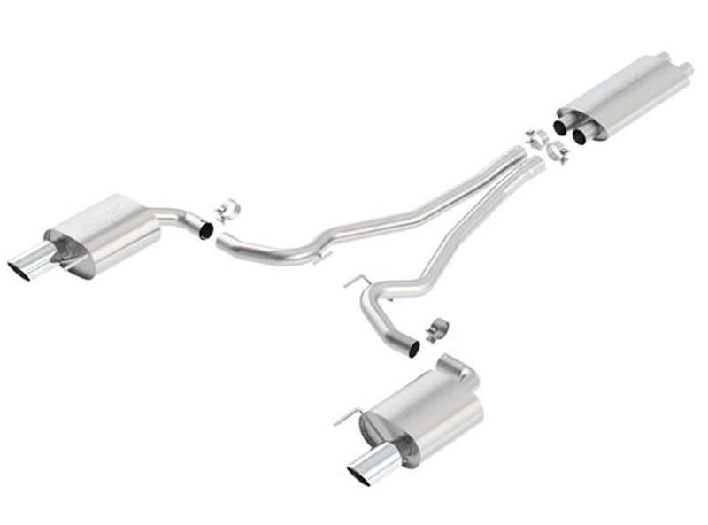 EC-Type approved systems are those that comply with European Union rules for motor vehicles, vehicle systems and components. Front muffler/ resonator contains an internal H-Pipe for increased performance and improved performance. This system comes with 4" bright chrome on T-304 stainless steel tips. Borla(r) Cat-Back(tm) & Axle-Back exhaust systems feature patented straight-through and multi-core technology to unleash hidden horsepower. Increased exhaust velocity adds power, driving excitement, fuel economy, and the distinctive Borla(r) Sound of Power respected by motoring enthusiasts everywhere. Each system is built from premium T-304 austenitic stainless steel, superior to T-400 series knockoffs (such as 409), to give you the absolute best in performance and durability. Ultra-smooth mandrel bends ensure maximum flow & power, and precision computer numerical control (CNC) manufacturing ensures an accurate fit. Best of all, Borla(r) stands behind every system with a Million-Mile in the USA and Canada (1.6 million kilometer). Products sold outside of the USA and Canada carry a 3-year limited warranty. Just what you'd expect from the world's most experienced (and most winning) exhaust brand.. Borla Cat-Back and Rear Section exhaust systems feature patented straight through and multi-core technology to unleash hidden horsepower. Increased exhaust velocity adds power; driving excitement; fuel economy; and the distinctive Borla Sound of power respected enthusiasts everywhere. Each system is built from premium 300 series austenitic stainless steel; superior to T-400 series knockoffs; to give you the absolute best in performance and durability. Ultra smooth mandrel bends ensure maximum flow and power; and precision computer controlled CNC manufacturing ensures an accurate fit. Best of all Borla stands behind every system with a Million-Mile Warranty. Just what you would expect from the worlds most experienced and most winning exhaust brad.. EC-Type - Touring Cat-Back(tm) Exhaust System 2015-2017 Ford Mustang GT 5.0L V8 Automatic/ Manual Transmission Rear Wheel Drive 2 Door Coupe/ Convertible Requiring EC-Type Certification. Borla(r) System Is EC-Type Approved.. 2015-2017 Ford Mustang GT 5.0L V8 Automatic/ Manual Transmission Rear Wheel Drive 2 Door Coupe/ Convertible Requiring EC-Type Certification. Borla(r) System Is EC-Type Approved.. Borla 15-16 Ford Mustang GT / Convertible 5.0L AT/MT EC-Type CB SS Single Round Rolled Tips Exhaus. EC-Type approved system complies with European Union rules. Front muffler/ resonator contains an internal H-Pipe. Cat-Back Exhaust System - EC-Type - Touring. BORLA Cat-Back System - Touring. Touring; Cat-Backâ„¢ System. Million Mile Warranty. Exhaust System Kit. Cat-Back System. ExhstSysKt. Cat-Back