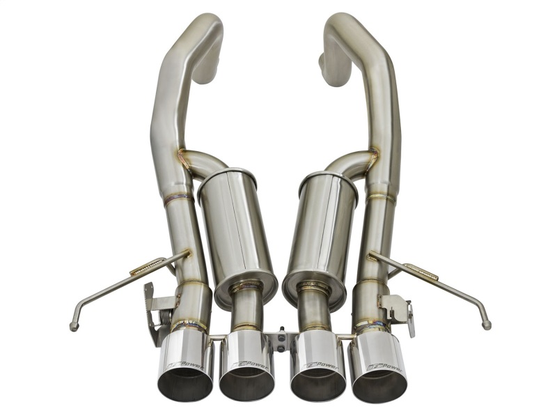 Aggressive Sound: Dual free-flowing mufflers are used to absorb high pitch tones producing a powerful sound and unleashing all available horsepower and torque. Exhaust Valve: This axle-back exhaust system incorporates factory style NPP dual mode exhaust valves which use the factory exhaust valve motors (not included). The valves helps regulate, direct and control the flow of exhaust gases by opening, closing, or partially obstructing passageways depending on throttle position for maximum performance. Simple Installation: is MACH Force-Xp axle-back exhaust system uses factory mounting locations providing stability and a hassle-free installation. Quad 4" Polished Tips: Finishing off this system are quad 4" diameter, polished, 304 stainless steel tips. The tips come with a laser-etched aFe power logo for an aggressive style. Leak-Free Seal: High quality band clamps are used for a complete 360 degree sealing surface. Brushed 304 SS Construction: The performance axle-back exhaust system is constructed of 3" to 2-1/2" mandrel-bent, brushed 304 stainless steel tubing for maximum performance, corrosion resistance and strength eliminating cracking. Note: Failures of original equipment AFM and NPP actuators are not covered by aFe Power(R) warranty. All aFe exhaust systems are engineered and manufactured in our Corona, California manufacturing facility.. MACH Force-Xp 304 Stainless Steel Axle-Back Exhaust System w/ Polished Tips Chevrolet Corvette Z06 (C7) 15-19 V8-6.2L (sc). aFe MACHForce XP 3in-2 1/2in Axle Back 304SS Exhaust w/ Polished Tips 15-17 Chevy Corvette Z06. MACH Force-Xp 304 Stainless Steel Axle-Back Exhaust System w/ Polished Tips. Uses All Factory Hanger Locations For A Hassle Free Install. Utilizes Unique Dual High Flow Stainless Steel Mufflers. Includes Factory Style NPP Dual Mode Exhaust Valves. Includes Quad 4 in. Polished Stainless Steel Tips. 100% Hand TIG-Welded 304 Stainless Steel Tubing. MACH Force-Xp Axle-Back Exhaust System. 3 in. To 2.5 in. Mandrel Bent Tubing. Axle-Back Exhaust. Brushed Finish