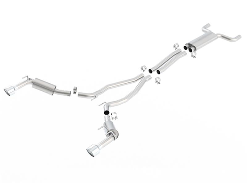 Fits vehicles WITHOUT Ground Effects Package (GFX). For installation of this system on a Camaro Convertible, Spacer Kit PN # 60545 is required. EC-Type approved systems are those that comply with European Union rules for motor vehicles, vehicle systems and components. Front muffler/ resonator contains an internal merge X-Pipe for increased performance and improved performance. Features 4.5" polished T-304 stainless steel tips. Borla(r) Cat-Back(tm) & Axle-Back exhaust systems feature patented straight-through and multi-core technology to unleash hidden horsepower. Increased exhaust velocity adds power, driving excitement, fuel economy, and the distinctive Borla(r) Sound of Power respected by motoring enthusiasts everywhere. Each system is built from premium T-304 austenitic stainless steel, superior to T-400 series knockoffs (such as 409), to give you the absolute best in performance and durability. Ultra-smooth mandrel bends ensure maximum flow & power, and precision computer numerical control (CNC) manufacturing ensures an accurate fit. Best of all, Borla(r) stands behind every system with a Million-Mile in the USA and Canada (1.6 million kilometer). Products sold outside of the USA and Canada carry a 3-year limited warranty. Just what you'd expect from the world's most experienced (and most winning) exhaust brand.. Borla Cat-Back and Rear Section exhaust systems feature patented straight through and multi-core technology to unleash hidden horsepower. Increased exhaust velocity adds power; driving excitement; fuel economy; and the distinctive Borla Sound of power respected enthusiasts everywhere. Each system is built from premium 300 series austenitic stainless steel; superior to T-400 series knockoffs; to give you the absolute best in performance and durability. Ultra smooth mandrel bends ensure maximum flow and power; and precision computer controlled CNC manufacturing ensures an accurate fit. Best of all Borla stands behind every system with a Million-Mile Warranty. Just what you would expect from the worlds most experienced and most winning exhaust brad.. 2014-2015 Chevrolet Camaro SS 6.2L V8 Automatic/ Manual Transmission Rear Wheel Drive 2 Door WITHOUT Ground Effects Package (GFX) Requiring EC-Type Certification. Borla(r) System Is EC-Type Approved. Installation On Convertible Models Requires Spacer Kit 60545.. EC-Type - S-Type Cat-Back(tm) Exhaust 2014-2015 Chevrolet Camaro SS 6.2L V8 Auto./ Man. Trans. RWD 2 Door Requiring EC-Type Certification. Borla(r) System Is EC-Type Approved. Installation On Convertible Models Requires Spacer Kit 60545.. Borla 14-15 Chevy Camaro SS / ZL1 SS Single Catback Exhaust System w/ Single Rear Exit. EC-Type approved system complies with European Union rules. For installation on Convertible, Spacer Kit 60545 REQUIRED. Front muffler/ resonator contains an internal X-Pipe. Fits vehicles WITHOUT Ground Effects Package (GFX). Cat-Back Exhaust System - EC-Type - S-Type. Touring; Cat-Backâ„¢ System. BORLA Cat-Back System - S-Type. Million Mile Warranty. Exhaust System Kit. Cat-Back System. ExhstSysKt. Cat-Back