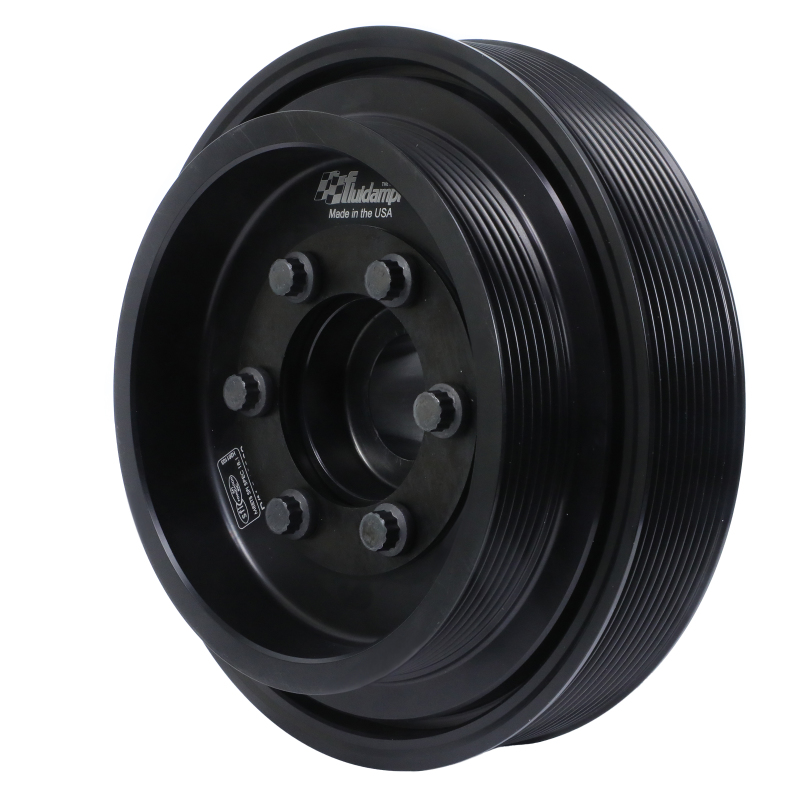 Protect your engine. Modifications can compromise your stock harmonic balancer. Install a Fluidampr performance damper early for best durability. Superior viscous damper design controls harmful torsional vibration across the entire rpm range. Reduce wear on engine components. Reduce risk of crankshaft failure. Improve timing. Unleash lost torque and horsepower. Precision CNC machined and balanced high-grade steel and Aluminum components. Corrosion resistant black anodized pulley and black zinc hub finish with engraved timing marks. No maintenance required. Trusted by leading engine builders worldwide. SFI 18.1 certified. Made in USA.. Harmonic Balancer - Fluidampr- SRT Hellcat 6.2L Hemi- Aluminum - Black Anodized / Black Zinc Chromate - 6-1/8" dia - 12.5 lbs - SFI 18.1 - Made in USA - Each. Fluidampr 15-21 Dodge Hellcat Charger/Challenger 6.2L Supercharged Steel Internally Balanced Damper. Harmonic Balancer - Fluidampr-SRT Hellcat 6.2L. Reduce wear on critical engine parts.. Reduce risk of crankshaft failure.. Unleash lost torque & horsepower.. Fluidampr Performance Damper. Broad RPM range protection.. SFI 18.1 spec. Made in USA.. Engine Harmonic Balancer. No maintenance required. Harmonic Balancer. Fluidampr