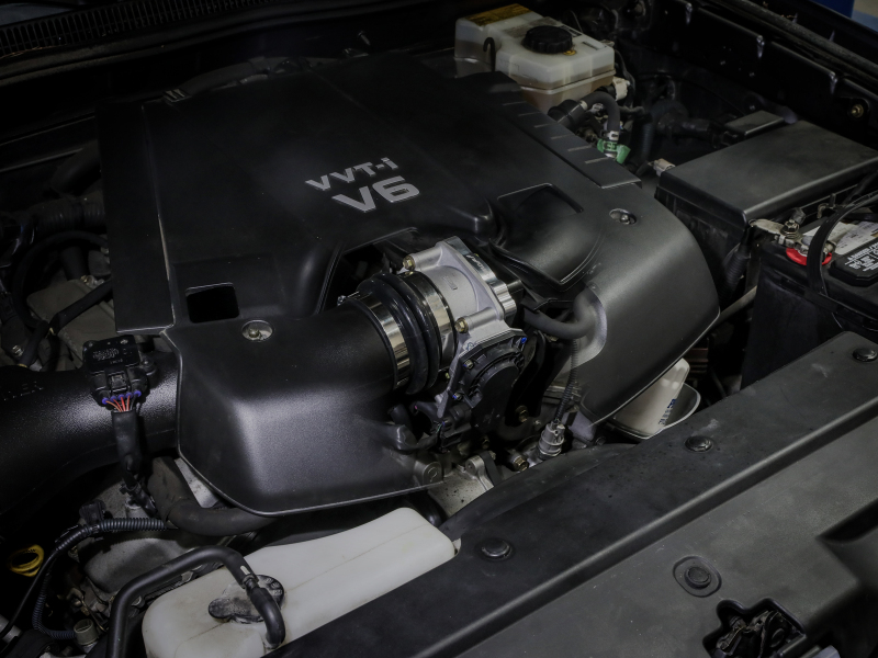 This aFe POWER 76mm Throttle Body and adapter kit improves engine air flow over the stock 65mm throttle body. The extra air flow will increase horsepower and throttle response. This kit will work with OEM or aFe cold air intakes. Performance gains will be more noticeable as more upgrades are added to the vehicle. All adapters are constructed from 6061-T6 billet aluminum and are precision machined for light weight, high strength, and perfect fit and finish. The Serrated/Swirl combination design creates intake turbulence in the combustion chamber which breaks up the fuel creating a more complete combustion cycle increasing horsepower, torque and improving throttle response. This aFe POWER 76mm throttle body kit uses all factory mounting locations providing stability and a hassle-free installation. All needed hardware is included with the kit. Idle will run high on some vehicles but will readjust once the ECU learns to properly control the idle (this can take up to 800 miles on some vehicles).. aFe POWER 03-09 Toyota 4Runner V6 4.0L / 10-14 Toyota FJ Cruiser V6 4.0L 76mm Billet Throttle Body. aFe POWER 76mm Throttle Body Toyota 4Runner/FJ/Tacoma/Tundra 03-15 (1GR-FE Single VVT-i). More Power and Better Throttle Response. 76mm Bore Diameter, No Tuning Required. Direct Bolt-On For Simple Installation. aFe POWER 76mm Throttle Body. Hardware and Gasket Included. aFe POWER Throttle Body. Plug-n-play Electronics. Billet Aluminum Adapter. Throttle Body