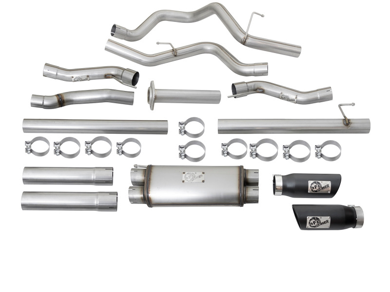 aFe is proud to introduce the MACH Force-Xp Cat-Back exhaust system. This exhaust system outflows the factory exhaust. This cat-back exhaust is constructed of 3" mandrel-bent 409 stainless steel tubing and comes complete with free-flowing muffler, OE-style bayonet hangers, band clamps and necessary hardware for a hassle-free installation. The smooth curves and increased diameter of this exhaust system helps remove restriction and keeps exhaust gas flowing smoothly for increased horsepower and torque. The system is finished off with dual gloss black 304 stainless steel, single wall slash cut tips for an aggressive style. Installation is a Snap: This MACH Force-Xp exhaust system use all factory mounting locations providing stability and a hassle-free installation. Leak-Free Seal: High quality band clamps are used for a complete 360-degree sealing surface eliminating leak paths. Aggressive Sound: A free-flowing stainless steel muffler is used to absorb high pitch tones producing a powerful sound and unleashing all available horsepower and torque. Perfect Fit: OE-style bayonet hangers are used to maintain a stable pipe location during high vibration and high heat conditions. The Bayonet tip holds the hanger bushing in place for an OE style fit that does not change with time.. MACH Force-Xp 3 IN 409 Stainless Steel Cat-Back Exhaust System w/Black Tip Ford F-150 Raptor 17-20 V6-3.5L (tt). aFe MACHForce XP 3in 409-SS Exhaust Cat-Back 2017 Ford F-150 Raptor V6-3.5L (tt) w/ Black Tip. MACH Force-Xp 3 IN 409 Stainless Steel Cat-Back Exhaust System w/Black Tip. High Quality Band Clamps For Leak-Free Seal. MACH Force-Xp Cat-Back Exhaust System. Mandrel Bent Stainless Steel Tubing. Hassle Free Installation. Free Flowing Muffler. Cat-Back Exhaust. Aggressive Sound. Smooth Curves