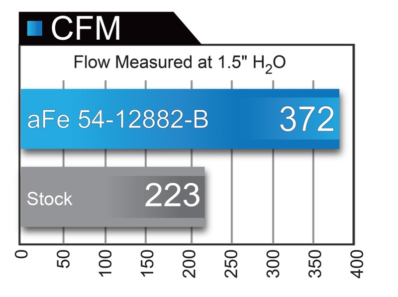 This sealed intake system utilizes pre-oiled, large 7" tall radial flow performance air filters with 5-layers of progressive finer mesh cotton media providing maximum airflow and performance. Also included is a Magnum SHIELD Pre-filters to protect your performance air filter from water splash or heavy rainstorms. Dual Mandrel-bent Wrinkle-black Powder-coated aluminum intake tubes are designed with an H-pipe to balance intake tube pressure and maximizes airflow and velocity. aFe developed this wrin kle-black powder-coated aluminum heat shield to snap onto the top of the lower half of the factory air box to provide a hassle-free installation utilizing factory mounting locations. An aluminum cover is used to finish off this intake and add a sense of style to your engine bay.. Magnum FORCE Stage-2XP Cold Air Intake System w/ Pro 5R Filter Ford F-150/Raptor 17-20 V6-3.5L (tt)/Expedition 18-21 V6-3.5L (tt). aFe Magnum FORCE Stage-2 Pro 5R Cold Air Intake System 2017 Ford F-150 Raptor V6-3.5L (tt) - Black. No Cutting Or Drilling On Factory Parts For Faster Installation. Magnum FORCE Stage-2XP Cold Air Intake System w/ Pro 5R Filter. Mandrel Bent Wrinkle-Black Powder Coat Intake Tubing. Alum. Cover To Add Sense Of Style To Engine Bay. Magnum FORCE Cold Air Intake System. Utilizes Stock Mounting Locations. Outflows Factory Intake By 92%. 1000 CFM Rating At 7 IN H2O. Magnum FORCE Intake