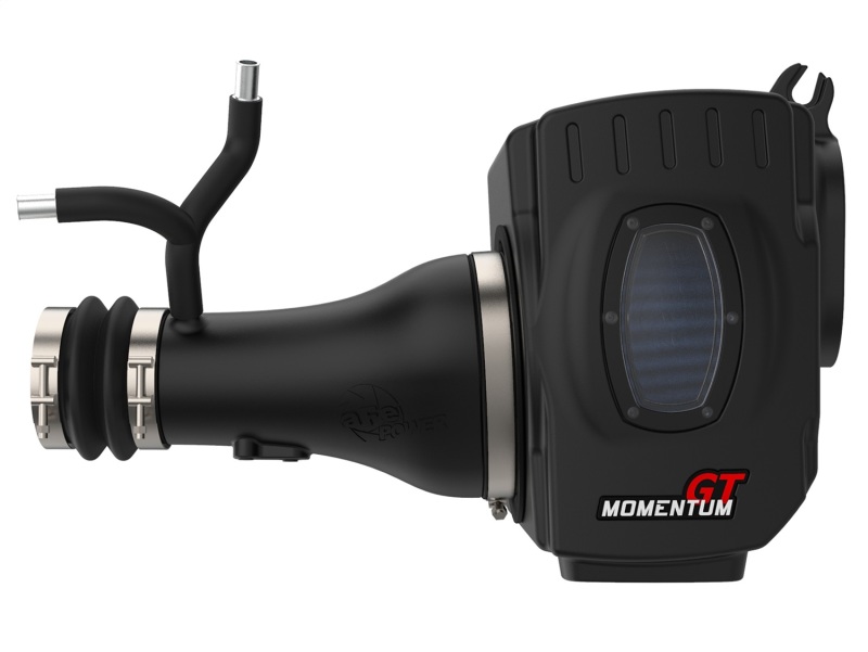 Get more power out of your Titan with our Momentum GT Pro 5R Cold Air Intake. The Momentum GT is a high-quality system, featuring a one-piece sealed housing with auxiliary scoop, and sight-window for easily filter inspection. The Pro 5R filter consists of an oiled 5-layer mesh cotton gauze media for maximum performance and filtration. The Pro 5R maintains a 98.6% efficiency rating, allowing high air flow and optimal performance even when dirty. Unique One-Piece High Quality Housing w/ Auxiliary Scoop: The smooth one-piece high quality sealed housing with auxiliary air scoop is used to eliminate the use of multiple-piece housings and ensure the coolest air intake charge available. A large, clear sight window is used for a hassle-free filter inspection and an aggressive style. A urethane plug is also included if you wish to block off the auxiliary air inlet. High Quality Tube: This system uses a high quality, dyno-tuned intake tube to achieve maximum power gains while maintaining a perfect fit. Large Pro 5R Performance Air Filter: The Momentum GT is designed around a large Pro 5R performance 360 degree radial flow air filter with 5-layers of progressively finer mesh cotton gauze oiled media and is constructed with 100% polyurethane frame for long life and multiple cleaning cycles. The unique filter-to-housing interface (patent pending) allows for maximum filter size which increases the available air volume while simplifying the installation process. Premium Hardware: Premium clamps and a silicone elbow coupling are used for strength and flexibility while also providing the most secure installation available. Momentum intakes are designed with fewer parts for a quick and simple installation.. Momentum GT Cold Air Intake System w/ Pro 5R Filter Nissan Titan 17-24 V8-5.6L. aFe Momentum GT Pro 5R Cold Air Intake System 17-18 Nissan Titan V8 5.6L. Unique Filter-To-Housing Interface For Easy Installation. Momentum GT Cold Air Intake System w/ Pro 5R Filter. Pro 5R PreOiled Washable/Reusable Air Filter. No Cutting Or Drilling on Factory Parts. CAD-Designed Roto-Molded Intake Tube. High Quality 1-Piece Sealed Housing. Momentum GT Cold Air Intake System. Momentum GT Intake