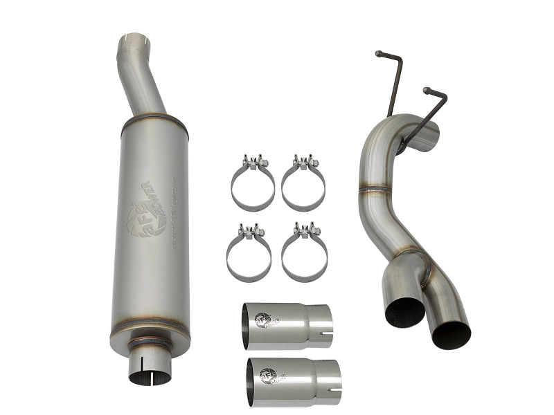 aFe POWER introduces an all new Rebel Series dual middle-side exit exhaust system for the 2014-2017 RAM 2500/3500 with V8-6.4L HEMI engine. This Rebel Series cat-back is designed with dual polished exhaust tips that exit in front of the rear passenger tire for a unique, aggressive look. The tips come with unique laser-etched aFe POWER logos on the side and are constructed from 304 stainless steel for durability. The exhaust system is constructed from 3-1/2" MIG-welded, mandrel bent 409 stainless steel tubing for maximum flow, increased horsepower and torque. This kit uses a free-flowing muffler to absorb high pitch tones producing a powerful sound. The performance cat-back exhaust system includes necessary hardware and clamps for a hassle-free install, with no cutting required making it a true bolt on system. 4" Dia. Polished Middle-Side Exit Tips: Finishing off the exhaust are dual 4" diameter polished 304 stainless steel clamp-on tips with a laser-etched aFe POWER logo on the side for an aggressive style. The tips are designed to exit from in front of the rear passenger side tire for a unique custom look. Installation Is A Snap: This Rebel Series exhaust system uses factory mounting locations providing stability and hassle-free installation. Leak-Free Seal: High quality band clamps are used for a complete 360-degree sealing surface eliminating leak paths. Aggressive Sound: A free-flowing stainless steel muffler is used to absorb high pitch tones producing a powerful sound and unleashing all available horsepower and torque. Perfect Fit: OE-style bayonet hangers are used to maintain a stable pipe location during high vibration and high heat conditions. The bayonet tip holds the hanger bushing in place for an OE-style fit that does not change with time. This makes for an easy installation with no cutting required.. Rebel Series 3-1/2 IN Stainless Steel Cat-Back Exhaust System w/Polish Tip RAM 2500/3500 14-18 V8-6.4L HEMI. aFe POWER Rebel Series 3.5in 409 SS Cat Back Exhaust w/Pol Tips 14-17 RAM 2500/3500 V8-6.4L Hemi. Rebel Series 3-1/2 IN Stainless Steel Cat-Back Exhaust System w/Polish Tip. Middle Exit Dual Polished Stainless Steel Tips w/aFe Power Logo. Rebel Series Cat-Back Exhaust w/ Pol Tip. Mandrel Bent 409 Stainless Steel Tubing. Will Not Fit w/aFe Headers PN 48-42013. Bayonet Style Hangers For Secure Fit. High Flow Stainless Steel Muffler. Complete w/Necessary Hardware. Heavy Duty Band Clamps. Very Aggressive Sound. Rebel Series Exhaust. Fits 149.4 Wheelbase. Passenger Side Exit