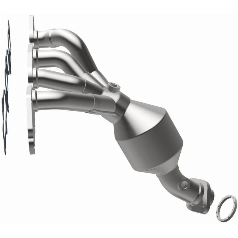 Keep the check engine light off with MagnaFlow OEM Grade Federal/EPA Compliant Direct-Fit Catalytic Converter 51974. With features including free-flowing mandrel-bent tubing and highly corrosion resistant stainless steel construction, easily install this spun body converter yourself using the proper tools, no cutting or welding required. MagnaFlow's state-of-the-art metrology department uses the latest 3D scanning systems during research and development, so you can be confident that your new part will fit and function like the original equipment. By replicating the OE spun body design, the single laser fusion weld greatly reduces the possibility of a leak, and our compact, low-mass design also allows for greater thermal efficiency. This direct-fit catalytic converter is designed specifically for the 2006-2008 Mazda 6 and interchanges with OE parts L327-13-450F and L362-13-45XF, among others. The included gaskets & hardware reduce the possibility of a leaking seal while avoiding the need to reuse corroded factory parts for installation. This replacement part is designed to meet or exceed Federal emissions requirements set forth by the EPA, complying with legal standards for OBDII Federally registered vehicles with California or Federal/EPA Emission systems.. Keep the check engine light off with MagnaFlow OEM Grade Federal/EPA Compliant Direct-Fit Catalytic Converter 51974. With features including free-flowing mandrel-bent tubing and highly corrosion resistant stainless steel construction, easily install this spun body converter yourself using the proper tools, no cutting or welding required. MagnaFlow's state-of-the-art metrology department uses the latest 3D scanning systems during research and development, so you can be confident that your new part will fit and function like the original equipment. By replicating the OE spun body design, the single laser fusion weld greatly reduces the possibility of a leak, and our compact, low-mass design also allows for greater thermal efficiency. This direct-fit catalytic converter is designed specifically for the 2006-2008 Mazda 6 and interchanges with OE parts L327-13-450F and L362-13-45XF, among others. Avoid potential exhaust leaks by using the included gaskets to get a proper seal. This replacement part is designed to meet or exceed Federal emissions requirements set forth by the EPA, complying with legal standards for OBDII Federally registered vehicles with California or Federal/EPA Emission systems.. Your trusted source for EPA-compliant catalytic converters, providing assurance of genuine compliance while delivering quality that will last. High Strength 16 Gauge 409 Stainless Steel Tubing For Exceptional Corrosion Resistance And Maximum Service Life. Expertly crafted to replicate OEM-like flow dynamics, maintaining factory performance and fuel efficiency. Expertly Crafted To Replicate Oem-Like Flow Dynamics/Maintaining Factory Performance And Fuel Efficiency. Simplifies Installation With Essential Gaskets And Hardware Being Included In The Box. Exhaust,MagnaFlow,Catalytic Convertor,Cadillac Convertor,Convertor,Emissions. Not legal for sale or installation in California; Colorado or New York.. Not legal for sale or installation in California, Colorado or New York.. Your Trusted Source For EPA-Compliant Catalytic Converters. OEM Grade Direct-Fit Manifold Catalytic Converter - Mazda. OEM Grade Direct-Fit Manifold Catalytic Converter-Mazda. Catalytic Converter with Integrated Exhaust Manifold. Magnaflow OEM Grade Manifold Catalytic Converter. Magnaflow Conv DF 2008 Mazda 6 2.3L Manifold. OEM Grade Manifold Catalytic Converter. Durable 308 Stainless Steel Mig Welds. Manifold Converter. ManiConvrtr. OEM Grade. 25173701