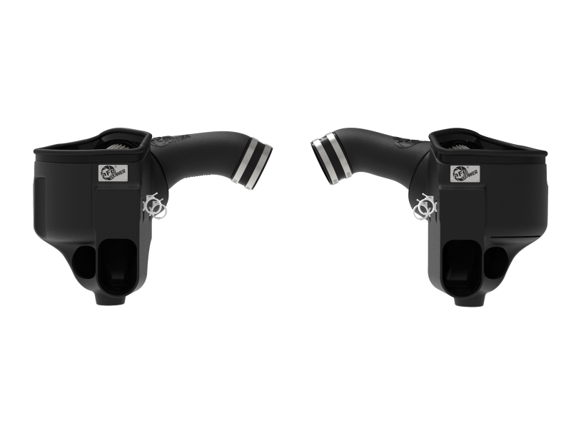 These 360-degree radial flow air filters feature a 4" flange and our oil-free Pro DRY S media with three layers of synthetic media for maximum convenience. Their progressive layering provides great filtration efficiency and dust holding capacity, while not requiring the use of oils. This media is best suited for street use. The included massive air filters are surrounded by open-element XLPE (cross-linked polyethylene) polymer housings that minimize warm engine air for maximum performance. Their open design allows for easy viewing of their air filters and delivers an aggressive Air Intake sound. In addition to the system's built-in air inlets, optional Dynamic Air Scoops (sold separately) are available to bring more cool air from the front of the vehicle into the intake housing (PN 54-12489-C).This system features high quality, computer-designed, dyno-tuned intake tubes to achieve maximum power gains while maintaining a perfect fit. Their XLPE material is heat soak resistant and extremely durable. This is a direct fit intake system that utilizes factory mounting points and requires no cutting or modifications. All necessary clamps, couplings, and hardware are included. Its revolutionary design, featuring our patent pending filter-to-housing interface, uses half the number of parts of a traditional cold air intake system.. Magnum FORCE Stage-2 Cold Air Intake System w/ Pro DRY S Filter BMW M5 (F10) / M6 (F06/12/13) 12-19 V8-4.4L (t) S63. aFe POWER Magnum FORCE Stage-2 Pro DRY S Cold Air Intake System 12-19 BMW M5 (F10) / M6 (F12/13). Innovative Filter-to-Housing Interface and Minimal Hardware for Fast and Easy Installation. Open-Element Design Showcases the Air Filters and Delivers an Aggressive Air Intake Sound. Optional Carbon Fiber Scoops Can be Used to Bring in Additional Cool Air. Washable and Reusable Pro DRY S Air Filters for Maximum Convenience. Magnum FORCE Stage-2 Cold Air Intake System w/ Pro DRY S Filter. Dyno-Proven Gains up to +19 HP & +16 Lbs. x Ft. TQ. Magnum FORCE Cold Air Intake System. Measured Flow: 580 CFM @ 7" H2O. Outflows Factory Intake by 16%. Magnum FORCE Intake