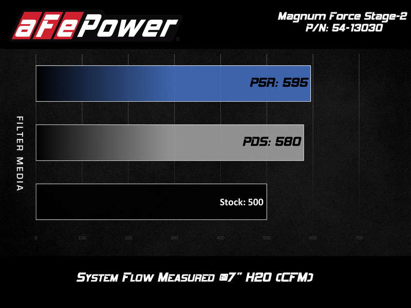 These 360-degree radial flow air filters feature a 4" flange and our pre-oiled Pro 5R media with five layers of progressively finer cotton gauze media for maximum performance. They provide your engine with the largest amount of high-flowing air and deliver the highest power gains in most cases. This media is perfect for street and/or track use. The included massive air filters are surrounded by open-element XLPE (cross-linked polyethylene) polymer housings that minimize warm engine air for maximum performance. Their open design allows for easy viewing of their air filters and delivers an aggressive Air Intake sound. In addition to the system's built-in air inlets, optional Dynamic Air Scoops (sold separately) are available to bring more cool air from the front of the vehicle into the intake housing (PN 54-12489-C). This system features high quality, computer-designed, dyno-tuned intake tubes to achieve maximum power gains while maintaining a perfect fit. Their XLPE material is heat soak resistant and extremely durable. This is a direct fit intake system that utilizes factory mounting points and requires no cutting or modifications. All necessary clamps, couplings, and hardware are included. Its revolutionary design, featuring our patent pending filter-to-housing interface, uses half the number of parts of a traditional cold air intake system.. Magnum FORCE Stage-2 Cold Air Intake System w/ Pro 5R Filter BMW M5 (F10) / M6 (F06/12/13) 12-19 V8-4.4L (t) S63. aFe POWER Magnum FORCE Stage-2 Pro 5R Cold Air Intake System 12-19 BMW M5 (F10) / M6 (F12/13). Innovative Filter-to-Housing Interface and Minimal Hardware for Fast and Easy Installation. Open-Element Design Showcases the Air Filters and Delivers an Aggressive Air Intake Sound. Optional Carbon Fiber Scoops Can be Used to Bring in Additional Cool Air. Washable and Reusable Pro 5R Air Filters for Maximum Performance. Magnum FORCE Stage-2 Cold Air Intake System w/ Pro 5R Filter. Dyno-Proven Gains up to +31 HP & +26 Lbs. x Ft. TQ. Magnum FORCE Cold Air Intake System. Measured Flow: 595 CFM @ 7" H2O. Outflows Factory Intake by 19%. Magnum FORCE Intake