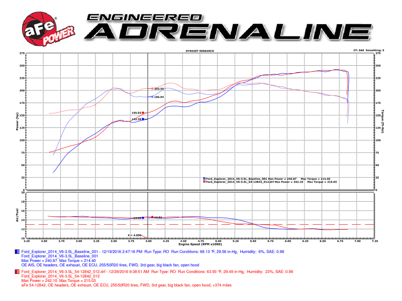 7" Large Air Filter: This intake system utilizes a pre-oiled, large 7" tall conical 360 degree radial flow performance air filter with 5-layers of progressive finer mesh cotton media providing maximum airflow and performance. Top Mounted Heat Shield Design: aFe developed this heat shield to snap onto the top of the lower half of the factory air box to provide a hassle-free installation utilizing factory mounting locations. High Quality Tube: This system uses a high quality, dyno-tuned intake tube to achieve maximum power gains while maintaining a perfect fit.. Magnum FORCE Stage-2 Cold Air Intake System w/ Pro 5R Filter Ford Edge 11-14 V6-3.5L. aFe Magnum FORCE Stage-2 Pro 5R Cold Air Intake System 09-14 Ford Edge V6-3.5L. 1-Piece Powdercoat Heat Shield Utilizes Stock Mounting Locations. No Cutting Or Drilling On Factory Parts For Faster Installation. Magnum FORCE Stage-2 Cold Air Intake System w/ Pro 5R Filter. Washable And Reusable Air Filter For Max. Performance. Outflows The Factory Intake System By 24%. CAD-Designed Roto-Molded Intake Tube. Magnum FORCE Cold Air Intake System. Magnum FORCE Intake