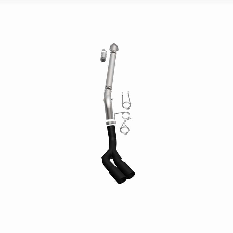 Ford F-350 Performance Exhaust - Rear - Magnaflow - DPF Back, Dual Same Side Behind Passenger Rear Tire, 5in. Black Coated Welded-On Single Wall Angle Cut Rolled Edge tips - Black - `08-`25