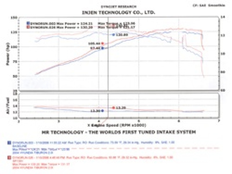 Is your engine choking for air and in need of some additional horsepower? If so, Injen has exciting news for you! The SP series of cold air intakes from Injen Technology will allow your engine to breathe deeper and enhance the performance that you've been craving. The SP series of cold air intakes is Injen's flagship system in their lines of traditional aluminum cold air intake systems. Injen Technology is the world's first tuned air intake system and holds four (4) patents on the tuning process of an intake system ? something no other manufacturer can claim. The SP series of cold air intakes feature many of Injen Technology's patented tuning process, including MegaRam (MR) Technology (Patents 7,359,795 and 7,669,571), Air Fusion (Patents 7,757,548 and 7,721,699), and many other innovations that keep Injen Technology at the forefront in the performance aftermarket. , , The soul of this intake is found within 6061-T6 aluminum air intake tube that provides a smooth uninterrupted path for highly efficient airflow. Our engineers have painstakingly designed the intake to provide the highest levels of safe power, along with clean aesthetics that will impress every time you open your hood. In addition to the impressive power increase, the Injen team has ensured that a safe Air fuel (A/F) ratio has been maintained throughout the power band. , , Additionally, this SP intake includes a fully serviceable Injen SuperNano-Web dry air filter, which provides increased filter surface area allowing for greater airflow and unbeatable filtration. If that's not enough, the Injen SP performance intake provides power you can hear and feel! This intake provides an aggressive and throaty tone that is unmatched in the aftermarket. Want to add that personalized touch to your intake? You're in luck, as Injen also offers this intake system in multiple finishes. To top it all off, this SP CAI kit includes the unbeatable Injen Technology limited Lifetime Warranty!. The Injen SP Series Intake systems Feature the Patent Pending MR Technology Process for Optimal Gains and a safe A/F ratio. The Injen SP Series Intake is The Worlds First Tuned Intake System.. Cold Air Intake System; Incl. Tubing/Filter/Hardware/Instruction; w/MR Technology; HP Gains +8.1 HP/Torque Gains +10.1 ft. lbs.; Polished;. SP Cold Air Intake System, Part No. SP1381P, 2004-2008 Hyundai Tiburon L4-2.0L.. Smooth intake piping eliminates restrictions and improves airflow. Injen 04-06 Tiburon 2.0L 4 Cyl. Polished Cold Air Intake. Dyno Proven gains of up to 8 hp and 10 lb-ft. of torque. Fully serviceable Injen SuperNano-Web dry air filter. Optional hydroshield part number 1035BLK or 1035RED. Hyundai 04-08 Tiburon 2.0L 4 Cyl. w/MR Technology. Provides power gains while maintaining A/F ratios. Replacement air filter part number X-1017-BB. Injen Technology Limited Lifetime Warranty. Aggressive engine tone under full throttle. Increased Torque Up To 10.1 ft./lbs.. Polished SP Cold Air Intake System. 6061-T6 aluminum intake tubing. Available in multiple finishes. Made in Pomona, California USA. No additional tuning required. Engine Short Ram Air Intake. Cold Air Intake System. Cold Air Intake Design. Injen Cold Air Intake. CARB EO #: D-476-5. Cold Air Intake. Air Intake Kit