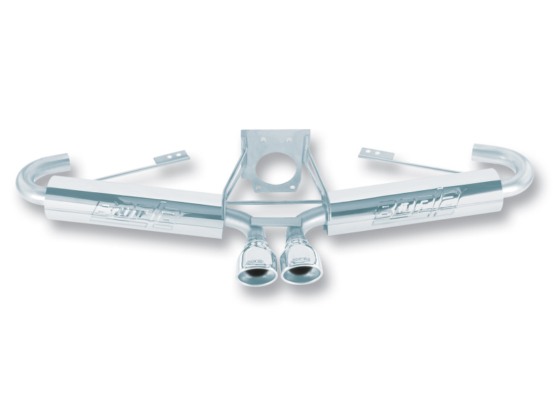EXCEPT 5 Speed Transmission. The Porsche Boxster & Boxster S with nice power and a mid-engine platform, are great handling sports cars. BORLA R&D engineers developed a 1.75" diameter mandrel-bent high-quality T-304 austenitic stainless steel package with emphasis on weight, as the exhaust is positioned significantly back at the very rear of this vehicle. The BORLA Cat-Back™ system managed to come in at less than half the weight of stock, adding to a better balance for those winding highways these cars love. The system delivers the classic s-Type sound with no drone inside the vehicle. This part flows an impressive 263cfm more air than stock, which accounts for the added performance. A true testimony to the incredible effort of a professional staff, taking a great car and making it even better. BORLA always is a value-added component, and that was never truer than in this application. The revolutionary BORLA Cat-Back™ looks great with the dual 3.5" x 2.75" oval, angle-cut polished T-304 stainless steel tips. The incorporation of a throaty powerful sound, solid power enhancements and better gas mileage make this BORLA exhaust a winner for this exciting race-bred Porsche Roadster. While many exhaust companies talk about racing, BORLA mufflers and exhaust systems are tested every weekend on race tracks around the world. The BORLA success is unmatched, and that effort transfers to the BORLA street systems that are a perfect match for the similar Porsche legacy. BORLA backs these and every Cat-Back™ system with an unequaled written Million-Mile warranty. The BORLA® sound of power. Its been described as asonic shot of adrenaline. An intoxicating concert ofsteel, gears and combustion that echoes from thespeedways, deserts and highways of the world.The sound of more victory laps than any otherbrand, the BORLA® exhaust note has become the quintessentioal soundtrack of high-performance motoring. And like all good automotive designs there is function behing the form. As any driving enthusiast knows, the sound of an exhaust provides more than just ear candy. Its a communications conduit between car and driver. A link between human and machine. The exhaust sound provides accoustic feedback of engine rpm to aid the driver in critical decisions such as gear selection or throttle input in rev-match shifting. At BORLA®, we understand this concept better than any exhaust manufacturer. Combining patented technology with computer modeling, extensive prototyping and advanced sound analysis tools. BORLA® engineers spend countless hours tuning exhaust systems to best reflect the personality and performance of vehicle applications. The result is an enhanced driving experience. With unrivaled clarity, the BORLA® exhaust note can help a driver stay within the powerband through a difficult section, using the exciting sensory feedback of sound. With unrivaled clarity the Borla exhaust note can help a driver stay within the powerband through a difficult section, using the exciting sensry feedback of sound.. S-Type Cat-Back™ Exhaust System 2000-2004 Porsche 986 Boxster/ Boxster S 2.7L/ 3.2L 6 Cyl. Manual Transmission Rear Wheel Drive 2 Door.. 2000-2004 Porsche 986 Boxster/ Boxster S 2.7L/ 3.2L 6 Cyl. Manual Transmission (EXCEPT 5 Speed) Rear Wheel Drive 2 Door.. Borla 00-04 Porsche Boxster 3.2L 6cyl MT SS Catback Exhaust. Cat-Back™ Exhaust System - S-Type. S-Type; Cat-Backâ„¢ System. EXCEPT 5 Speed Transmission. Million Mile Warranty. Exhaust System Kit. Cat-Back System. ExhstSysKt