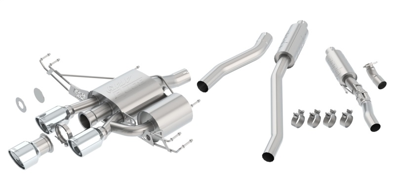 The Borla(r) Cat-Back(tm) system for the Civic Type R is unique in the industry with an adjustable sound level. By Changing the block off plates behind the center tip you can adjust the SPL (Sound Pressure Level) to your taste. System also features Borla(r)'s Polyphonic Harmonizer Technology which utilizes patented units that contain pipes of different diameters and lengths to create multiple exhaust notes that harmonize to deliver a clean, rich, full-bodied sound to the Borla(r) mufflers. The mufflers then enhance this sound to the character and volume appropriate for our Touring, S-Type and ATAK(r) systems. System features polished T-304 stainless steel tips. Borla(r) Cat-Back(tm) & Axle-Back exhaust systems feature patented straight-through and multi-core technology to unleash hidden horsepower. Increased exhaust velocity adds power, driving excitement, fuel economy, and the distinctive Borla(r) Sound of Power respected by motoring enthusiasts everywhere. Each system is built from premium T-304 austenitic stainless steel, superior to T-400 series knockoffs (such as 409), to give you the absolute best in performance and durability. Ultra-smooth mandrel bends ensure maximum flow & power, and precision computer numerical control (CNC) manufacturing ensures an accurate fit. Best of all, Borla(r) stands behind every system with a Million-Mile Warranty. Just what you'd expect from the world's most experienced (and most winning) exhaust brand.. ATAK(r) Cat-Back(tm) Exhaust System 2017-2021 Honda Civic Type R 2.0L 4 Cyl.. Manual Transmission Front Wheel Drive 4 Door Hatchback.. By changing the block off plates behind the center tip you can adjust the SPL (Sound Pressure Level). 2017-2021 Honda Civic Type R 2.0L 4 Cyl.. Manual Transmission Front Wheel Drive 4 Door Hatchback.. Borla 2017-2018 Honda Civic Type-R Cat-Back Exhaust. System features Polyphonic Harmonizer technology. Cat-Back(tm) Exhaust System - ATAK(r). BORLA Cat-Back System. Exhaust System Kit. Cat-Back System. bor140738