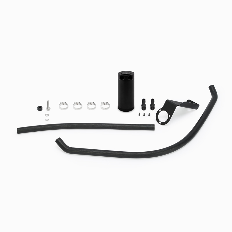 The classic Hemi from Dodge has always been a great engine. But even Dodge couldn't dodge the dangers of engine blow-by. Mishimoto has you covered with our direct-fit, baffled oil catch can kit for the 2009+ Dodge Ram 5.7L V8. This kit provides excellent protection for your engine, keeping the blow-by down to a minimum and lengthening your engine's need for valve servicing. During testing, we quickly discovered that our standard 2oz can was not enough. The amount of blow-by exceeded the can's capacity in under 1000 miles! We had to switch to a larger, 7.5 oz can, so the intervals between draining would last longer and you'd be able to effectively protect your Hemi. Our billet aluminum 7.5 oz can has internal baffling, air diverters, and a 50-micron bronze filter to keep oil out of your intake and carbon deposits off your valves. The bracket included in each kit is made of very strong and thick steel, so vibration will not be something to worry about. With it bolting directly to your radiator support, you'll have a clean OEM look. This kit installs in under 1 hour, is easily serviceable, and comes with our Mishimoto Lifetime Warranty.. Single can mounting in line with the PCV system separates oil particles using 50-micron bronze filter. Mishimoto 2009+ Dodge Ram 5.7L Baffled Oil Catch Can Kit - Black. Direct-fit bracket mounts can in serviceable location. Baffled Oil Catch Can, fits Dodge Ram 5.7L 2009-2018. Larger 7.5 oz capacity extends time between checks. Dodge Ram 5.7L Baffled Oil Catch Can, 2009-2018. Mishimoto MMBCC-RAM-09PBE2. Engine Oil Catch Can Kit. Oil Catch Can Kit