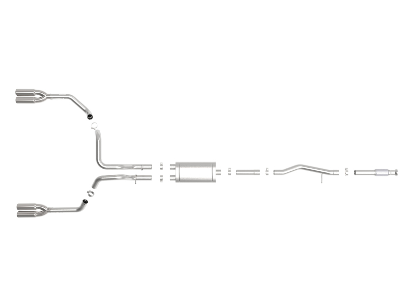 With the aFe POWER Vulcan Series cat-back exhaust system your Silverado/Sierra will be able to perform and sound as good as it looks. 3" to dual 3" mandrel-bent, 304 stainless steel tubing and high-flow muffler improves performance across the power band and delivers a deep, aggressive exhaust tone. 100% MIG-welded for strength and durability. Quad 4" polished 304 stainless steel exhaust tips for an aggressive custom look.. 3" Dual 304 Stainless Steel Tubing: This system is constructed of durable mandrel-bent 3" 304 stainless steel tubing for maximum corrosion resistance. Mandrel-bent tubing for maximum air flow and low turbulence; increasing torque, horsepower and improved throttle response.. High-Flow Performance Muffler: A single-in, dual-out high-flow stainless steel muffler allows increased exhaust flow and reduces exhaust drone, maintaining a deep, tuned sound.. Perfect Fit: Factory-style bayonet hangers are used to maintain a stable pipe location during high vibration and high heat conditions for a secure fit.. Hassle-Free Installation: No cutting or modifications required. Quality hardware and clamps are included for a hassle-free installation.. Quad Polished Tips: Quad 4" polished 304 stainless steel exhaust tips replace the factory tips for an aggressive, sport truck look.. Vulcan Series 3 IN 304 Stainless Steel Cat-Back Exhaust System w/ Polished Tips GM Silverado/Sierra 1500 19-25 V8-5.3L. Fitment Note: This item will only fit models equipped dual rear-exiting exhaust system from the factory.. aFe Vulcan Series 3in 304SS Exhaust Cat-Back Exh w/ Pol Tips 2019 GM Silverado / Sierra 1500 V8-5.3L. Vulcan Series 3 IN 304 Stainless Steel Cat-Back Exhaust System w/ Polished Tip. Comes Complete with all Necessary Hardware for a Hassle-Free Installation. Uses Bayonet Style Hangers and Heavy-Duty Band Clamps for a Secure Fit. Utilizes a High-Flow Stainless Steel Single-in, Dual-out Muffler. Emissions Disclaimer: This product does not require a CARB EO#. Constructed out of 3" Mandrel-Bent 304 Stainless Steel Tubing. Quad 4" Polished 304 Stainless Steel Exhaust Tips. Vulcan Series Cat-Back Exhaust System. Cat-Back Exhaust