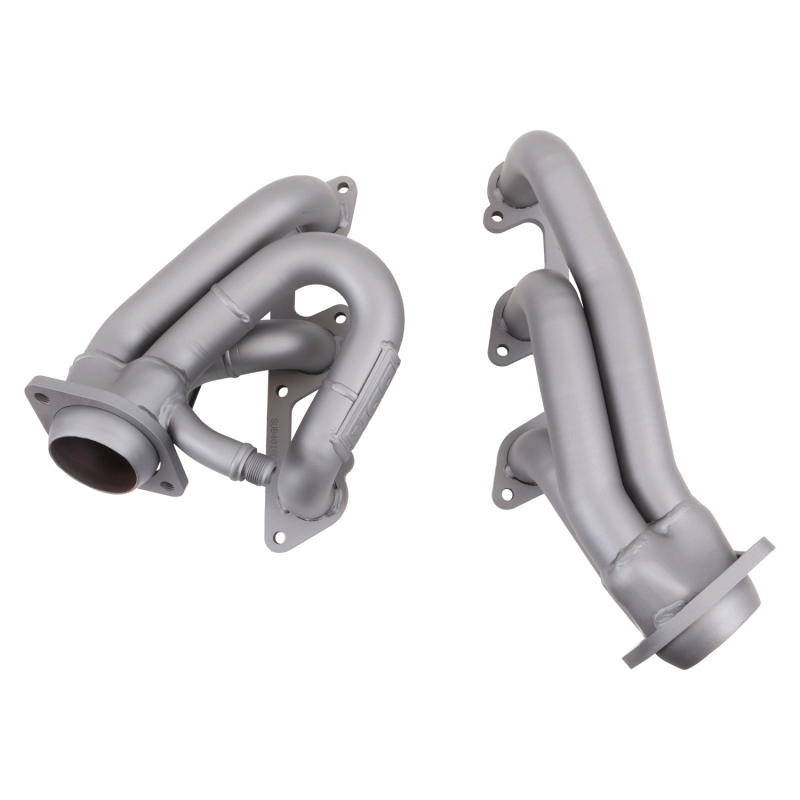 These BBK Performance shorty tuned Length exhaust Headers are designed and constructed as direct fit replacements for all 05-10 Mustang V6 applications. Each header is manufactured with 1-5/8 in. CNC mandrel bent tubing that offers unrestricted exhaust flow for increased horsepower and torque over factory OEM manifolds. BBK tuned Length headers offer improved scavenging waves for better combustion, which leads to improved performance and fuel economy over stock or equal Length headers. As with all BBK Performance exhaust headers they feature a 3/8 in. laser cut flange for additional strength and a guaranteed leak free fit. All headers are robotically and precision hand welded and then pressure tested to ensure years of reliability and performance in the real world. All BBK exhaust headers are available in a titanium ceramic or polished silver ceramic coated finish and include new exhaust header gaskets, header bolts and hardware to complete the installation.. These BBK Performance shorty tuned Length exhaust Headers are designed and constructed as direct fit replacements for all 05-10 Mustang V6 applications. Each header is manufactured with 1-5/8" CNC mandrel bent tubing that offers unrestricted exhaust flow for increased horsepower and torque over factory OEM manifolds. BBK tuned Length headers offer improved scavenging waves for better combustion, which leads to improved performance and fuel economy over stock or equal Length headers. As with all BBK Performance exhaust headers they feature a 3/8" laser cut flange for additional strength and a guaranteed leak free fit. All headers are robotically and precision hand welded and then pressure tested to ensure years of reliability and performance in the real world. All BBK exhaust headers are available in a titanium ceramic or polished silver ceramic coated finish and include new exhaust header gaskets, header bolts and hardware to complete the installation.. All BBK Performance parts are backed by a 1-YEAR manufacturer’s warranty from the original date of purchase. An optional extended warranty is also available - giving you an additional 2 or 3 years from original date of purchase. Costs for the extended warranty option can be viewed when the item is added to your cart. The manufacturer’s warranty is based on normal use and installation of each product.. Titanium Ceramic Finish - Direct Bolt On Installation - 50 State Legal CARB Approved - New Gaskets and Hardware Included - Improved Exhaust Flow For Additional Performance. Shorty Tuned Length Exhaust Header Kit; CNC-Series Performance; CNC Mandrel Bent 1.625 in. Tubing; Direct Fit Design; Incl. New Gaskets/Hardware; Titanium Ceramic Finish;. BBK 05-10 Mustang 4.0 V6 Shorty Tuned Length Exhaust Headers - 1-5/8 Titanium Ceramic. 2005-2010 MUSTANG 4.0L-V6 1-5/8 SHORTY EXHAUST HEADERS (TITANIUM CERAMIC).. 2005-2010 MUSTANG 4.0L-V6 1-5/8 SHORTY EXHAUST HEADERS (TITANIUM CERAMIC). Shorty Tuned Length Exhaust Header Kit. Titanium Ceramic Finish. BBK Exhaust Headers. Exhaust Headers. Exhaust Header. Headers-Shorty