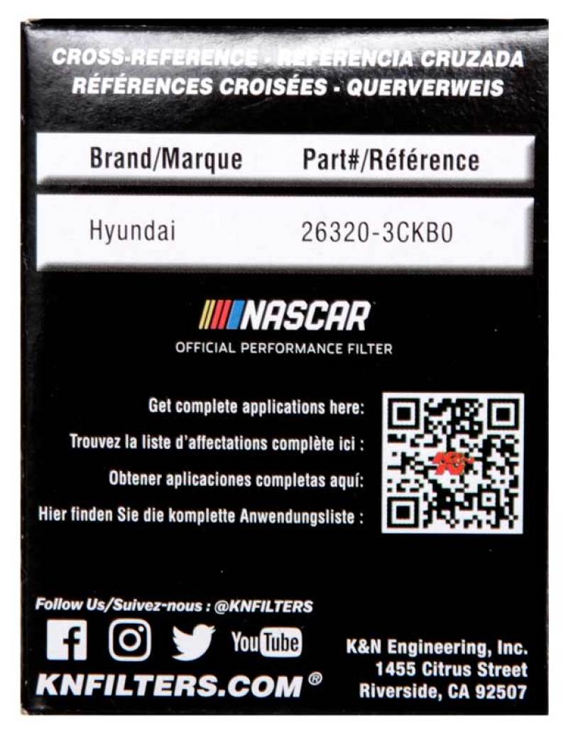 K&N Cartridge Oil Filters are designed to satisfy the needs of racers and engine builders as well as the average vehicle owner who wants the best oil filter available. K&N cartridge oil filters trap harmful contaminants while the filter's construction allows for high oil flow rates. All K&N oil filters are manufactured to meet stringent engineering standards. They are covered by a limited warranty to be free from defects in materials and workmanship when installed and replaced using engine and equipment manufacturer's recommended service intervals.. K&N Cartridge Oil Filters are designed to satisfy the needs of racers and engine builders as well as the average vehicle owner who wants the best oil filter available.. K&N Performance Oil Filter for 15-16 Hyundai Genesis Sedan 3.8L V6. Ideal for High-End Synthetic Motor Oil. OIL FILTER; AUTOMOTIVE. Engine Oil Filter. Oil Filter