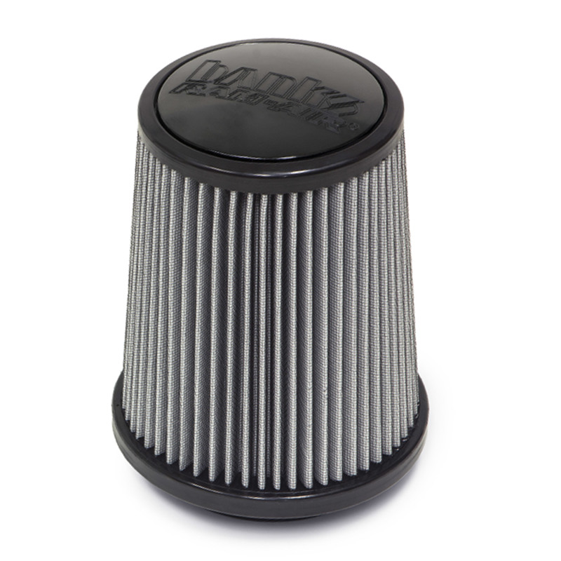 Easy to install replacement filter (oiled or dry). Increased airflow, excellent filtration, and longer service life. Banks Ram-Air filter is a high-flow air-cleaner element that decreases intake restriction and sends more cool, dense ram-air into your engine. Even wet or dirty, Banks Ram-Air filters outperform conventional ones, because the multi-layer design traps moisture, dust, and debris on the oiled or dry, outer surface, allowing air to move through with ease. Key Features: Increased airflow. Excellent filtration. Longer service life. Easy to install. DRY Air Filter Element. Banks Ram-Air filter is a high-flow air-cleaner element that decreases intake restriction and sends more cool, dense ram-air into your engine. Banks Ram-Air filters outperform conventional ones, because the multi-layer design traps moisture, dust, and debris on the outer surface, allowing air to move through with ease.. Air Filter Element, Dry Filter for 2017-2019 Chevy/GMC 2500/3500 6.6L Duramax, L5P and 2019-2024 Ram 2500/3500 6.7L. Air Filter Element; DRY; Ram-Air System - 2017-2019 GM 6.6L L5P. Banks Power Air Filter Element - Oiled Filter. Increased airflow and excellent filtration. Re-Oil Amount: 3.3 oz (93 g). Air Filter Element. Engine Air Filter. Cold Air Intakes. Easy To Install