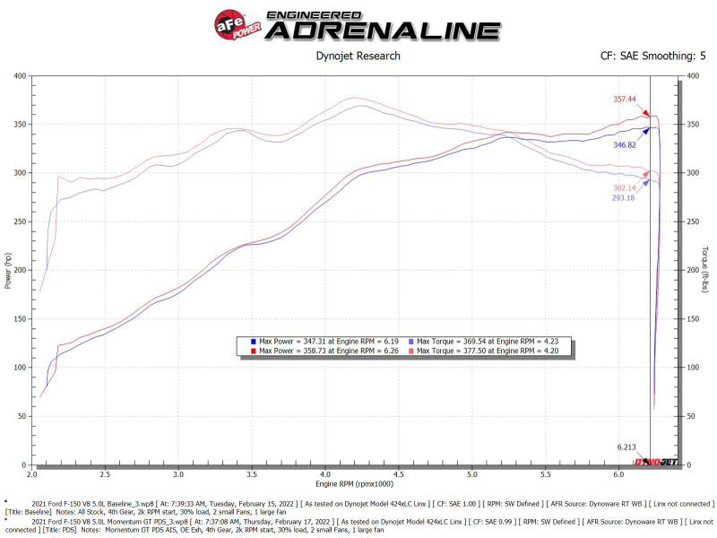 Momentum’s unique filter-to-housing interface was built to feature the largest air filter possible. This 9” tall 360-degree radial flow air filter features our oil-free Pro DRY S media with three layers of synthetic media for maximum convenience. Its progressive layering provides great filtration efficiency and dust holding capacity, while not requiring the use of oils. This media is best suited for street use. Its inverted top makes for more filter surface area, resulting in longer service intervals. This media is best suited for street and light off-road use. The smooth one-piece sealed housing, constructed of heat-resistant cross-linked polyethylene (XLPE), features our patent-pending filter-to-housing interface. Its innovative design minimizes the total number of parts, making for an easy installation. A large, clear sight window allows for hassle-free filter inspection, without having to disassemble your system. The housing incorporates the factory air inlet scoop. A silicone seal piece finishes the inlet of the housing and seals to the hood to block off unwanted hot engine air from entering the air intake system. This system features a high quality, computer-designed, dyno-tuned intake tube to achieve maximum power gains while maintaining a perfect fit. Its XLPE material is heat soak resistant and extremely durable. Stainless-steel clamps are included for strength, and a premium silicone coupling allows for ample flexibility. Momentum GT intakes are designed with fewer parts for a fast and easy installation.. Premium Clamps and a Silicone Coupling Provide a Secure Seal and Excellent Durability. Momentum GT Cold Air Intake System w/ Pro DRY S Filter Ford F-150 21-25 V8-5.0L. Large Clear Sight Window for Convenient Filter Inspection Without Disassembly. Sealed Housing Incorporates Factory Hood Inlet Scoop and Grille Air Inlet. aFe Momentum GT Pro DRY S Cold Air Intake System 2021+ Ford F-150 V-5.0L. Washable and Reusable Pro DRY S Air Filter for Maximum Convenience. Innovative Filter-to-Housing Interface for Easy Installation. Momentum GT Cold Air Intake System w/ Pro DRY S Filter. Momentum GT Cold Air Intake System. Momentum GT Intake