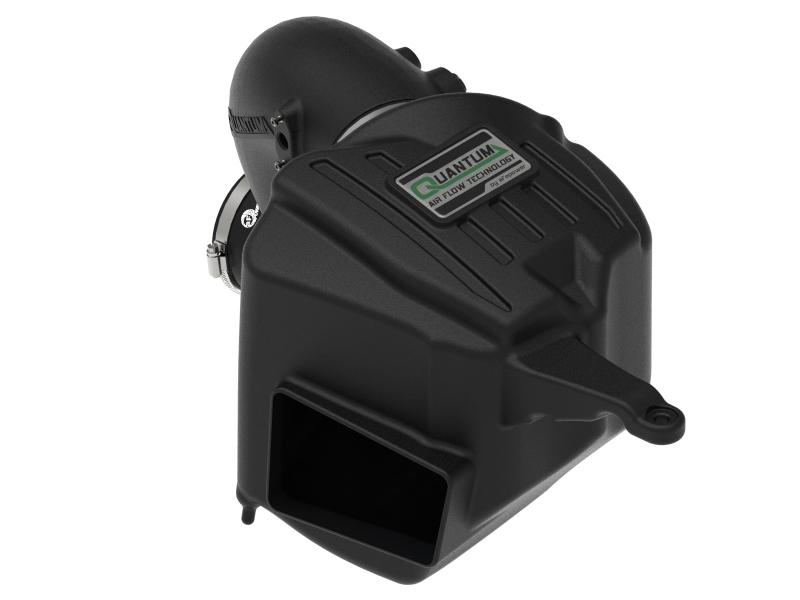 This 360-degree radial flow air filter features a 5" flange and our pre-oiled Pro 5R media with five layers of progressively finer cotton gauze media for maximum performance. It provides your engine with the largest amount of high-flowing air and delivers the highest power gains in most cases. This media is perfect for street use. Its inverted top makes for more filter surface area, resulting in longer service intervals. The filter features an injection molded base and top for lighter weight and rigidity. Its base includes a built-in 3-angle velocity stack for smooth, even airflow and captive screws to easily attach the filter to the housing. Quantum uses an integrated filter-to-housing design that attaches both components with four captive screws, making for a positive surface area seal, as well as easy installation and maintenance. Its durable sealed housing features a unique, five rib, industrial-grade look for aFe quality recognition. Quantum uses a dyno-tuned, computer designed intake tube to achieve optimum air flow and a perfect fit. Its XLPE (cross-linked polyethylene) polymer material is heat soak resistant and extremely durable. This Quantum intake system includes a flexible bellows-style coupling and a durable reinforced silicone coupling. Quantum intakes are designed with fewer parts for a quick and easy installation. This is a direct fit intake system that utilizes factory mounting points and requires no cutting or modifications. All necessary clamps, couplings, and hardware are included.. Durable XLPE Construction and Sealed Housing Protects From Impact, Extreme Temperatures, and Other Elements. Innovative Filter-to-Housing Interface and Minimal Hardware for Fast and Easy Installation. QUANTUM Cold Air Intake System w/ Pro 5R Filter Dodge Diesel Trucks 03-07 L6-5.9L (td). Washable and Reusable Pro 5R Air Filter for Maximum Performance. aFe Pro 5R Air Intake System 03-07 Dodge Diesel 5.9L-L6 (TD). Dyno-Proven Gains up to +15 HP and +40 Lbs. x Ft. TQ. QUANTUM Cold Air Intake System w/ Pro 5R Filter. Measured Flow: 530 CFM @ 7" H2O. QUANTUM Cold Air Intake System. Outflows Factory Intake by 34%. QUANTUM Intake
