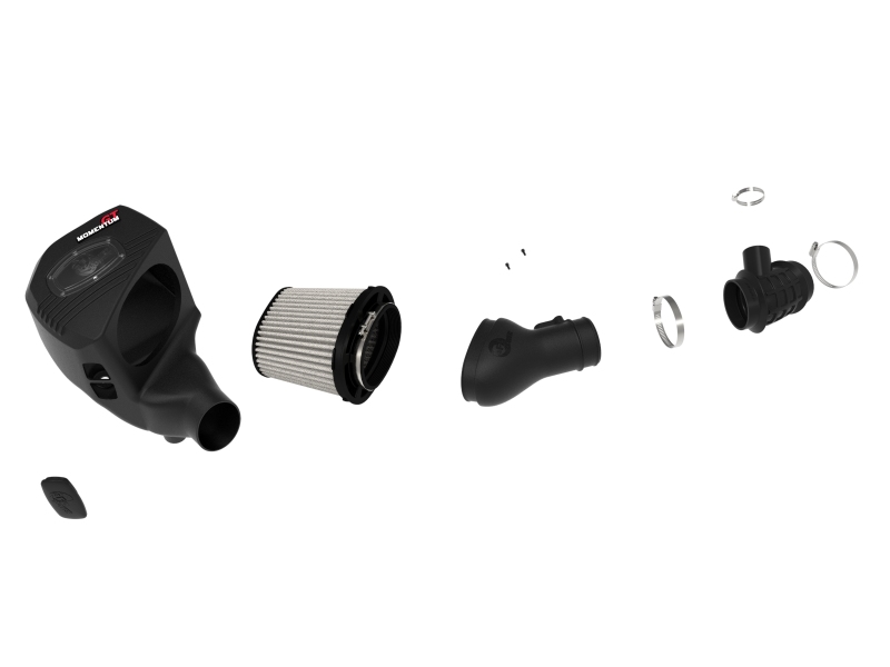 This 7.5” tall 360-degree radial flow air filters feature a 6” x 4" flange and our oil-free Pro DRY S media with three layers of synthetic media for maximum convenience. Their progressive layering provides great filtration efficiency and dust holding capacity, while not requiring the use of oils. Its inverted top makes for more filter surface area, resulting in longer service intervals. This media is best suited for street use. Momentum’s innovative filter-to-housing interface was built to feature the largest air filter possible. Once the system is installed, the air filter can be easily removed from the housing for maintenance by uninstalling the intake tube. The smooth one-piece sealed housing, constructed of heat-resistant cross-linked polyethylene (XLPE), features our patent-pending filter-to-housing interface. Its innovative design minimizes the total number of parts, making for an easy installation. A large, clear sight window allows for hassle-free filter inspection, without having to disassemble your system. The housing connects to the factory air inlet, using no additional hardware. Its auxiliary air inlet can be used to bring in additional air from the engine compartment, or can be closed with an included plug. This system features a high quality, computer-designed, dyno-tuned intake tube to achieve maximum power gains while maintaining a perfect fit. Its XLPE material is heat soak resistant and extremely durable. High quality premium clamps and a silicone bellow coupling are used for durability while also providing the most secure installation available. Momentum GT intakes are designed with fewer parts for a quick and simple installation.. Durable XLPE Construction and Sealed Housing Protects From Impact, Extreme Temperatures, and Other Elements. Momentum GT Cold Air Intake System w/ Pro DRY S Filter Chevrolet Blazer 19-25 V6-3.6L. aFe POWER Momentum GT Pro Dry S Intake System 19-22 Chevrolet Blazer V6-3.6L. Clear Sight Window for Convenient Filter Inspection Without Disassembly. Premium Stainless Clamps and Silicone Couplings Provide a Secure Seal. Washable and Reusable Pro Dry S Air Filters for Maximum Performance. Innovative Filter-to-Housing Interface for Easy Installation. Momentum GT Cold Air Intake System w/ Pro DRY S Filter. Momentum GT Cold Air Intake System. Measured Flow: 410 CFM @ 7" H20. Outflows Factory Intake by 17%. Momentum GT Intake
