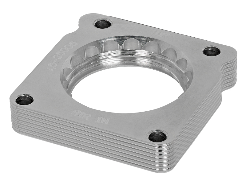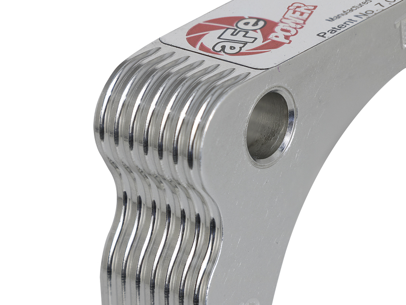 Serrated/Helix Design: The Serrated/Helix design creates air turbulence in the intake manifold. This turbulence increases the air pressure in the combustion chamber resulting in increased horsepower, torque and improved throttle response. The Serrated/Helix combination design also reduces intake whistle that occurs with other helix only designs. 6061-T6 Billet Aluminum Construction: All Silver Bullet Throttle Body Spacers are precision machined from 6061-T6 billet aluminum for lightweight, high strength and perfect fit and finish. Installation Is A Snap: This Silver Bullet throttle body spacer uses all factory mounting locations and a gasket providing stability and a hassle-free installation. Emissions Disclaimer: This product does not require a CARB EO# (Vehicle does not exist in U.S.). Note: Will work with aFe's Momentum GT intakes (P/N: 51/54/75-76107).. Serrated/Helix Combination Design for Optimum Airflow Into Combustion Chamber. Silver Bullet Throttle Body Spacer Kit Nissan Patrol (Y61) 01-16 L6-4.8L. aFe 01-16 Nissan Patrol (Y61) L6-4.8L Silver Bullet Throttle Body Spacer. Precision Machined from 6061-T6 Aluminum. Silver Bullet Throttle Body Spacer Kit. Fits M/T Vehicles Only. Throttle Body Spacer