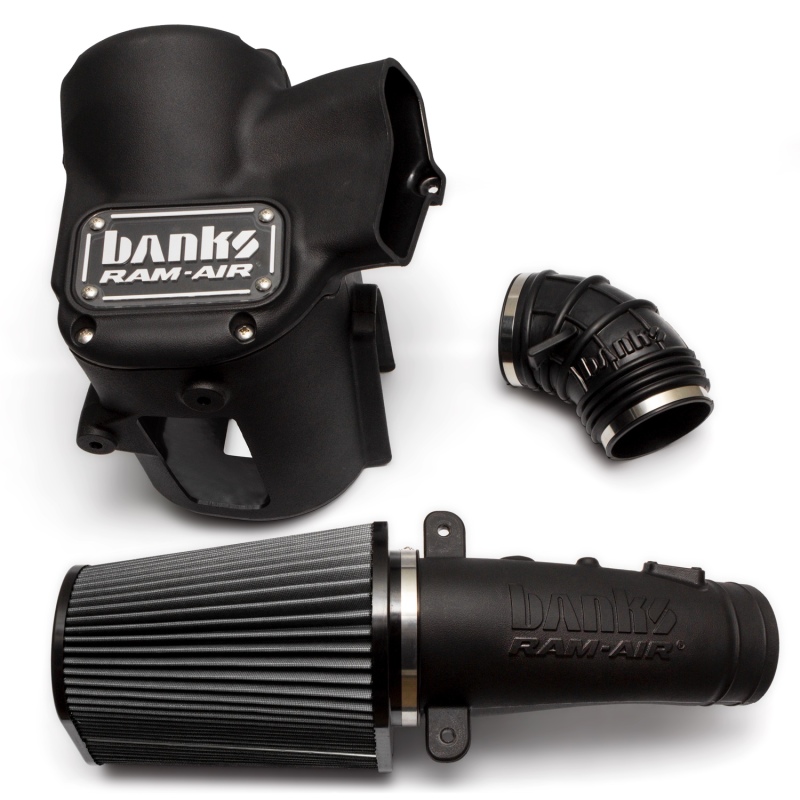 Banks Ram-Air Intake feeds your 6.7L Power Stroke engine cooler, denser, outside air for greater power and fuel economy. Unlike the OEM airbox with its harsh bends and internal baffles, the Ram-Air's streamlined and optimized shape maintains air velocity and increases air density. Experience the benefits of greater flow, performance, and sound over stock. Its performance is extensively tested using Computational Fluid Dynamics software, validated on the flow bench, and proven on the vehicle in the real world. Key Features: "Big Ass Filter" extends service life and requires fewer cleanings. Side fender vent for additional sound and cold air induction. Unique silicone elbow with bellows allow for engine movement. Over 116.7 in2 more filtration media vs our closest competitor. Massive two piece XLPE airbox insulates against heat soak. Enclosed housing keeps out hot, power-robbing engine air. Largest filter on the market with 537.3 in3 total volume. Oversized airbox increases cool air volume around filter. More audible and aggressive induction note. Connects to OEM forward air inlet. 5-year limited warranty. Oiled air filter element. No check engine light. Super Duty Ram-Air Induction. Banks Ram-Air Intake feeds your 6.7L Power Stroke engine cooler, denser, outside air for greater power and fuel economy. Unlike the OEM airbox with its harsh bends and internal baffles, the Ram-Air's streamlined and optimized shape maintains air velocity and increases air density. Experience the benefits of greater flow, performance, and sound over stock. Its performance is extensively tested using Computational Fluid Dynamics software, validated on the flow bench, and proven on the vehicle in the real world. 50 State Compliant CARB E.O. D-161-152. Banks Ram-Air Big-Ass Dry Filter, Cold Air Intake System for 2020-2022 Ford F250/F350/F450 6.7L Power Stroke. Banks Ram-Air® Intake System; Incl. Big-Ass Oiled Filter/Housing/Intake Pieces/Clamps/Hardware/Ducting;. Banks Power 20-21 Ford F250/F350/F450 6.7L RAI, Ram Air Intake System - Dry Filter. +36% Mass Air Flow gain vs stock higher sustained power and better fuel economy. Banks Ram-Air Big-Ass Dry Filter, Cold Air Intake System. Engine Cold Air Intake Performance Kit. 2020-2022 FORD F250/F350/F450 6.7L. Banks Ram-Air® Intake System. Banks Ram-Air® Intak. 5 Year Warranty. Banks Ram-Air