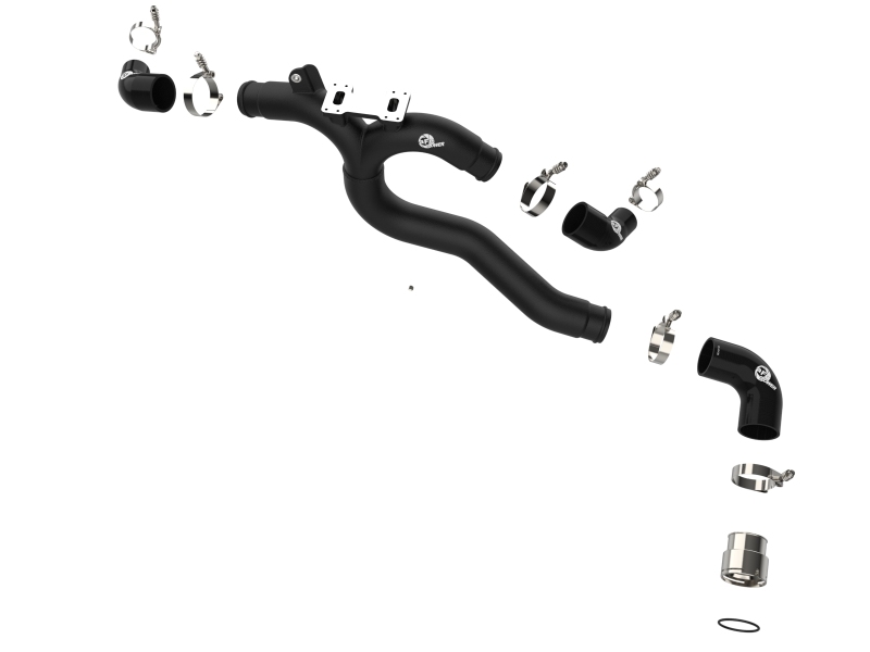 Smooth transitions in the mandrel-bent aluminum pipes decrease turbulence and minimize pressure loss, increasing horsepower and torque. This kit includes high-quality, stainless-steel, spring-loaded T-bolt clamps and heavy-duty, 5-ply, polyester reinforced silicone couplings. This charge pipe kit features factory style billet aluminum quick-connect adapter with an o-ring to ensure a leak-free fit while maintaining superior strength and durability. Finished in wrinkle black powder coating with a unique laser-etched aFe power logo for a custom look.. Directly replace your Kia Stinger's restrictive charge pipes with aFe's BladeRunner free-flowing, heat-resistant aluminum pipes. Features Premium Stainless-Steel Spring-Loaded T-Bolt Clamps And 5-Ply Silicone Couplings. BladeRunner 3 IN Aluminum Hot Charge Pipe Black Kia Stinger 18-23 V6-3.3L (tt). 1/8" NPT Port Provided for Connecting Sensors or Water Methanol Injection. aFe Kia Stinger 18-22 V6-3.3L (tt) BladeRunner Hot Charge Pipe- Black. Powder Coated Wrinkle Black for Heat and Corrosion Resistance. Hot Side Outflows the Factory Charge Pipes by up to +38%. Built in CNC Machined Aluminum Blow Off Valve Adapter. Features Factory Style Quick-Connect With an O-Ring. BladeRunner 3 IN Aluminum Hot Charge Pipe Black. TIG-Welded 2-1/2" to 2-3/4" Aluminum Pipes. BladeRunner Hot Charge Pipe. Hot Charge Pipe