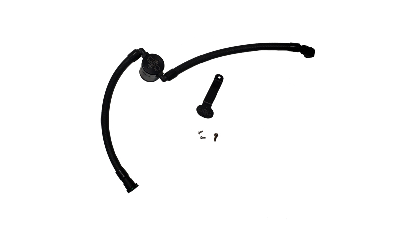 During the process of venting crankcase pressure back through your intake track, large amounts of oil, in the form of vapors can gather/accumulate in your intake tube, intake manifold runners and even dilute your gas, lowering its octane level. This happens on all engines and is even worse with forced inducted vehicles (supercharged and turbocharged) as crankcase pressures are increased. To combat this, we have developed an oil separator of our own design. Milled from solid billet aluminum this is a rock-solid piece. It has a knurled tank base for easy removal to drain the spent oil and an O-ring seal to prevent any leaks.