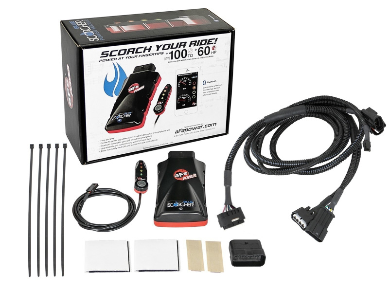 The aFe POWER SCORCHER BLUE performance modules are the next generation of plug-and-play technology. These modules are the fastest way to safely gain significant performance gains, while improving drivability, without modifying or leaving any trace on the Engine Control Unit (ECU). The SCORCHER BLUE modules features an LED remote for in-cabin, on-the-fly, power adjustments while also providing Bluetooth connectivity through our downloadable app on your iOS or android device. The app is downloadable for free on the APP Store or Google Play store and provides setting adjustments, custom tunes, gauges to view different engine parameters, measureable acceleration times and more. Designed with factory style connectors, these modules easily connects for a quick and simple install. The LED control switch can be routed through the firewall into the cabin or connect to the module via Bluetooth with the smartphone app. In-Cabin, on-the-fly power adjustments can be made to accommodate your driving needs. Select one of four power settings on the in-cab LED control switch or control the module remotely via the free iOS or android app. The smartphone connects to the module via Bluetooth and displays engine parameters (MAP). There are 4-power settings identifiable by the LED light on the remote or in the smartphone app; Stock (Green), Sport (Yellow), Sport+ (Orange) and Race (Red). These modules are Bluetooth 4.0 capable and can connect to most iOS or android devices, which allows you to control the module without running any wire through the firewall. The aFe POWER SCORCHER BLUE app is free on the APP Store and Google Play store and allows the smartphone device to become a handheld remote for the module. It also displays turbo boost gauge (MAP), allows you to customize each power mode, upgrade to the latest revision and even measure 0 to 60 ¼ mile times. Bluetooth Connectivity to your iOS or Android Smartphone to Adjust Power Modes, Custom Tune Power Modes, or Upgrade the Device to the Latest Version. SCORCHER BLUE Bluetooth Capable Power Module Toyota Land Cruiser (J300)/Tundra 22-25 V6-3.4L (tt). Four Power Position Settings: Stock (Green), Sport (Yellow), Sport+ (Orange) and Race (Red). Increase turbo boost to improve vehicle performance, efficiency and throttle response. aFe Scorcher Blue Module 22-23 Toyota Land Cruiser (J300)/Tundra V6-3.5L (tt). In-Cabin On-the-Fly Power Adjustments via LED light switch or Smartphone App. Does Not Modify the ECU and Leaves No Trace (No Footprint). Next generation of plug & play Bluetooth power module. SCORCHER BLUE Bluetooth Capable Power Module. SCORCHER BLUE Bluetooth Power Module. Power Module