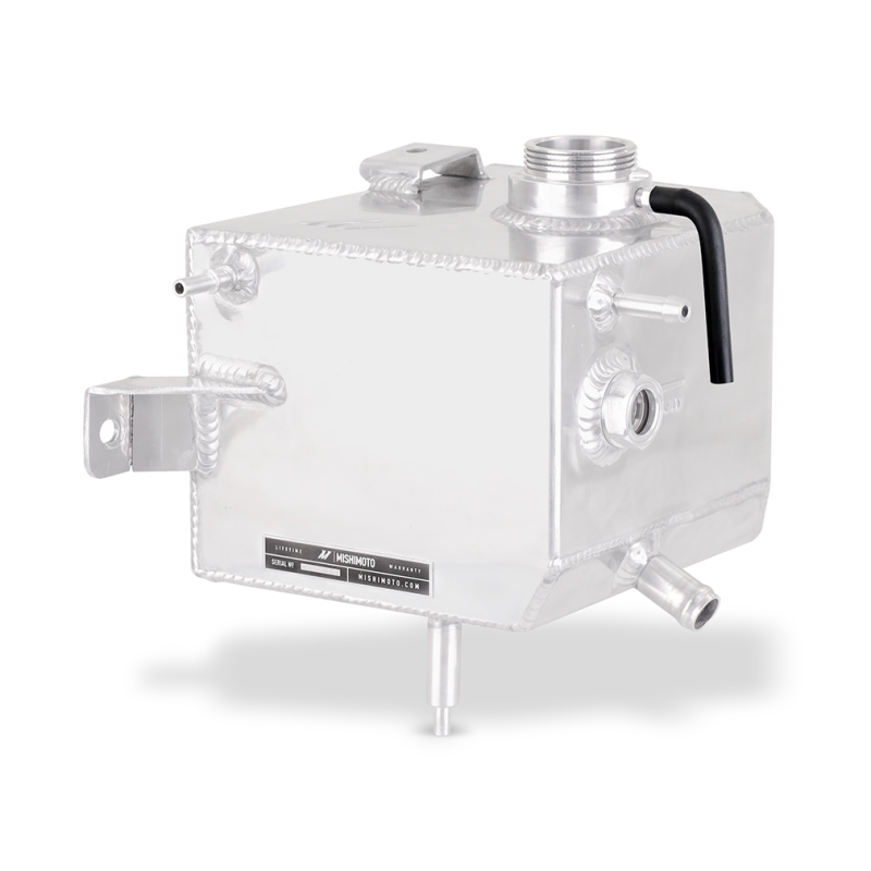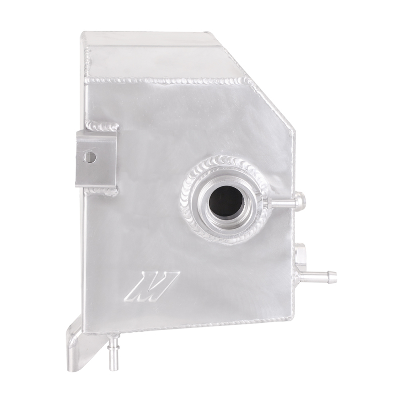 It's only been four years since the first Ford Ranger 2.3L EcoBoost rolled off the assembly line, but those four years have been rough on some of the plastic parts under your Ranger's hood. Your coolant expansion tank is probably beginning to show its age thanks to thousands of heating and cooling cycles bathed in orange or pink coolant. It's likely developed that classic dingy yellow tone, and it may be hard to see the coolant level through the side of the tank that gets more opaque by the day. Soon enough, that plastic expansion tank will become brittle, and one misplaced elbow or especially deep pothole has the potential to start a cascade of coolant. Luckily, Mishimoto's 2019-2023 Ford Ranger all-aluminum expansion tank is built to last a lifetime.----Our Ford Ranger EcoBoost expansion tank is constructed from aircraft-grade aluminum and precision TIG-welded to create a durable expansion tank that can withstand thousands of heat cycles and high pressures without cracks or leaks. On the outside, we've included a high-visibility sight glass and stamped cold-fill line to make checking your coolant level easy, while the available micro-wrinkle black powder coated or polished finishes suit any style. Our fill neck also accepts the stock expansion tank cap to keep maintenance easy. Inside, baffles keep coolant cycling into the engine, no matter how steep the road or trail gets.----Like all of our products, this aluminum expansion tank for your 2019-2023 Ford Ranger 2.3L EcoBoost is backed by our Mishimoto Lifetime Warranty for a lifetime of durability and worry-free running.. Internal baffles keep coolant near overflow port during aggressive driving, preventing air entry into coolant system. High-visibility sight glass and stamped cold-fill line allow for quick reading of coolant level. Aluminum Expansion Tank, fits 2019-2023 Ford Ranger 2.3L EcoBoost, Natural. Full-aluminum construction with durable precision TIG-welds. Mishimoto 2019+ Ford Ranger Expansion Tank - Polished. Engine Coolant Reservoir. Mishimoto MMRT-RGR-19P. Coolant Reservoir
