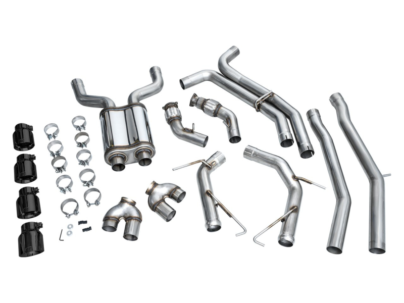 If raw and rowdy are your speed, the Track Edition is your dose of steel. A true dual 3” T304L stainless steel configuration featuring a bespoke, straight-through center resonator specific for the 2.9TT, and Track Edition straight sections in the rear. Quad 4.5" double-walled, slash-cut tips in your choice of chrome silver or diamond black. AWE No CEL Guarantee, Perfect Fitment Guarantee, and Lifetime Warranty come standard. Please note: this version is known to get rowdy in the mid-range and during cruising speeds, and may be too much for many. For that reason, this particular version cannot be returned due to sound preference. Prepare yourself.. Post-catalyst downpipes feature factory-matched flanges and robust flex sections to absorb engine movement. Impressive clearance above factory chassis brace, ball-socket tip merges ensure easy installation. AWE Tuning 19-23 Audi C8 S6/S7 2.9T V6 AWD Track Edition Exhaust - Diamond Black Tips. Less is more: clean, straight-through design for maximum performance and tone. Proudly engineered, designed, and manufactured in-house, in the USA. AWE Track Edition Exhaust for Audi C8 S6/S7 - Diamond Black Tips. Quad 4.5” slash-cut, double-walled tips in diamond black. AWE Track Edition for Audi C8 S6/S7 - Diamond Black Tips. 50-state emissions-compliant dual 3” catback exhaust. Fits models with and without rear-wheel steering. AWE electronic valve simulators included. Pure bolt-on, no-cutting required. Perfect Fitment Guarantee. AWE No CEL Guarantee. Lifetime warranty. Track Exhaust