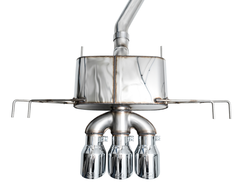 A 3” T304L stainless steel downpipe-back configuration, the Touring Edition Exhaust is the perfect dose of steel for drivers looking for straight-pipe performance, a deep, sophisticated exhaust note, and zero drone at highway speeds. Featuring an integrated front pipe, robust midpipe resonator, thick-walled T304L stainless steel, and a special iteration of AWE’s 180 Technology® bespoke for the FL5 in the rear, the Touring Edition is the do-it-all configuration for everyday drivers. Thanks to AWE’s patented drone-canceling 180 Technology®, the Touring Edition keeps all of the commotion to the rear of the vehicle where it belongs, and destroys drone-prone frequencies that would otherwise resonate within the cabin at highways speeds – all packaged perfectly to fit within the undertray of the bumper with plenty of clearance. The Touring Edition, and the 180 Technology® within it, were both developed for use with and without an aftermarket catted downpipe. As exhaust gases exit the K20 engine and flow into an AWE 180 Technology equipped resonator, they pass through strategically located ports, and into reflection chambers. Sound waves, carried by these exhaust gasses, bounce off the walls of the reflection chambers. By controlling the size and location of the ports and the chambers, we also control when the sound waves exit the chambers. The specific timing of when the reflected sound waves rejoin the main exhaust flow creates a one-hundred-and-eighty-degree out-of-phase sound wave that cancels out problematic frequencies. All of this with a straight-through design- in other words, all the power, none of the drone. Throw in that it was designed and manufactured in the USA, and AWE's famous diamond black or chrome silver tips, and you're looking at the best sounding, longest lasting, and best fitting exhaust for the FL5 - all backed by AWE's No CEL and Perfect Fitment Guarantee, and a Lifetime Warranty.. Integrated 3” frontpipe includes a unique flange and gasket on the inlet to accommodate a true 3” inch diameter from inlet to outlet while successfully mating to the factory interface. Features patented drone-canceling 180 Technology®, bespoke for the FL5, developed with and without aftermarket catted DPs. Stamped stainless steel trident tip merge with triple 4.5" double-walled slash-cut tips available in chrome silver. AWE Tuning 2023 Honda Civic Type R FL5 Touring Edition Exhaust w/ Triple Chrome Silver Tips. Handcrafted from 3” CNC mandrel-bent, U.S.-sourced .065” wall T304L stainless steel. Dyno-proven max gains of 14 hp and 13 ft-lbs of torque at the wheels (stock downpipe). AWE Touring Edition Exhaust for FL5 Civic Type R - Triple Chrome Silver Tips. Straight-forward install: no motor mount removal and generous clearances. Proudly designed, engineered, and manufactured at AWE in the USA. AWE Touring Edition for FL5 CTR - Triple Chrome Tips. Full 3” catbacks for the FL5 Civic Type R. Direct bolt-on for factory-like simplicity. Touring Edition: 46 lbs, Stock: 50.5 lbs. Perfect fitment guaranteed. AWE No CEL Guarantee. Lifetime warranty. Touring Exhaust