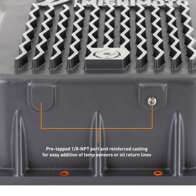 Designed for enthusiasts who work on their own trucks or want a reliable service upgrade, this Mishimoto pan adds 6.1 quarts of ATF capacity and features internal baffles to reduce fluid slosh and improve heat dissipation. A precision-machined dovetail groove retains an O-ring seal to eliminate messy gasket sealants, and pre-installed bolt retainers make installation cleaner and faster. The pan also includes a magnetic drain plug and a 1/8-inch NPT port and plug for temperature sensor installation, making routine maintenance and temperature monitoring straightforward.