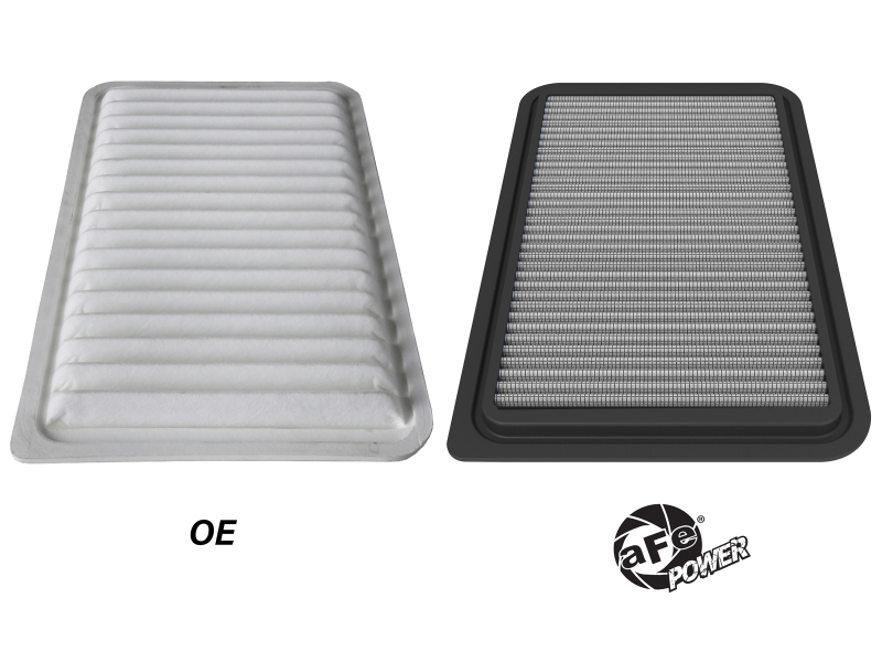 This Magnum FLOW OE Replacement combines deep, open pleats and progressive synthetic layering to increase usable filter surface area, improve flow characteristics and provide strong dust-holding capacity without the need for oiling. The pliable sealing surface and progressive bump seal help the filter conform to the housing for a proper fit, and the full 360° polyurethane frame resists heat-cycle degradation so the filter keeps its shape over time. The Pro DRY S media is washable and reusable and can be recharged with aFe POWER CLEANER for multiple cleaning cycles.