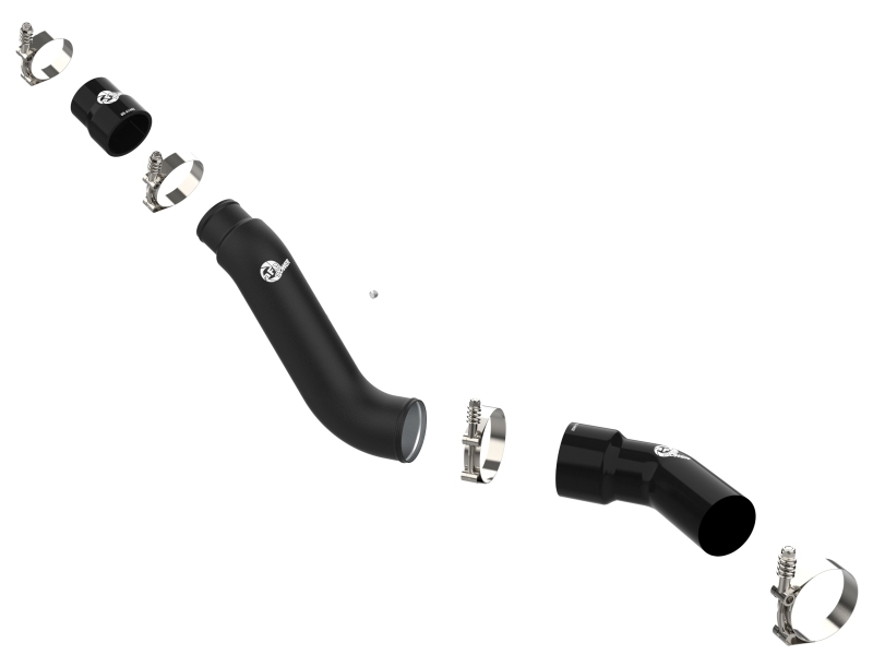 Smooth transitions in the mandrel-bent aluminum pipes decrease turbulence and minimize pressure loss, increasing horsepower and torque. This kit includes high-quality, stainless-steel, spring-loaded T-bolt clamps and heavy-duty, 5-ply, polyester reinforced silicone couplings for superior strength and durability. Finished in wrinkle black powder coating with a unique laser-etched aFe POWER logo for a custom look.. Features Premium Stainless-Steel Spring-Loaded T-Bolt Clamps And 5-Ply Silicone Couplings. BladeRunner 2-1/2 IN & 3 IN Aluminum Hot Charge Pipe Black RAM 1500 16-19 V6-3.0L (td). aFe 16-19 RAM 1500 V6 3.0L (TD) BladeRunner 3in Aluminum Hot Charge Pipe - Black. 1/8" NPT Port is Provided for Connecting Sensors or Water Methanol Injection. Powder Coated Wrinkle Black for Heat and Corrosion Resistance. BladeRunner 2-1/2 IN & 3 IN Aluminum Hot Charge Pipe Black. BladeRunner Hot Charge Pipe. Hot Charge Pipe