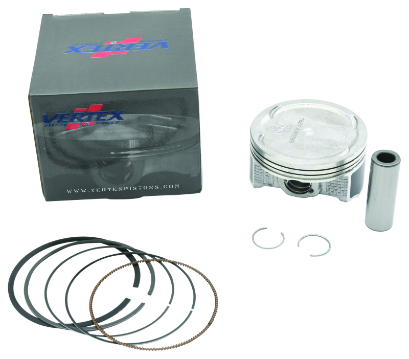 This Vertex cast-replica piston kit provides an exact-fit option with A, B or C size pistons to match your cylinder bore for consistent compression and reduced blow-by and oil consumption. Each kit is supplied with piston, rings, wrist pin and circlips so you have the hardware needed for a proper install. Skirts are coated with molybdenum disulphide (MoS2) to aid break-in and help extend piston life. Pistons are heat treated using a T-5 hardening and tempering cycle for reliable durability under typical off-road loads.