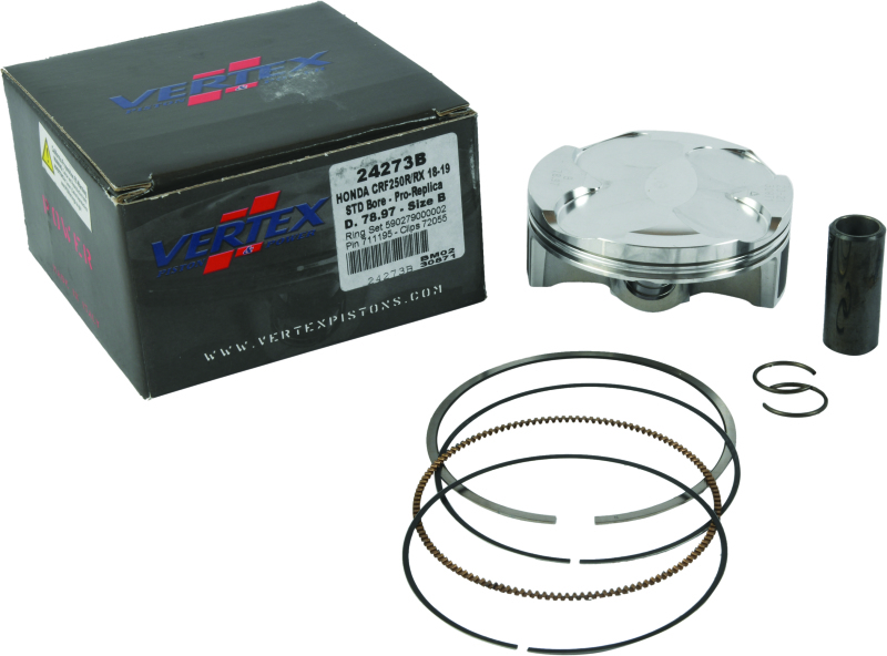 Exact fit A, B or C pistons match your cylinder bore perfectly to maximize power and performance, while reducing blow-by and oil consumption. All piston kits include piston, rings, wrist pin and circlips required.. Skirts are coated with a hi-tech molybdenum disulphide (MoS2) for faster break-in and increased piston life. Vertex Piston 18-19 Honda CRF 250 R 250cc Forged Replica Piston Kit. Heat treated with T-5 hardening and tempering cycle