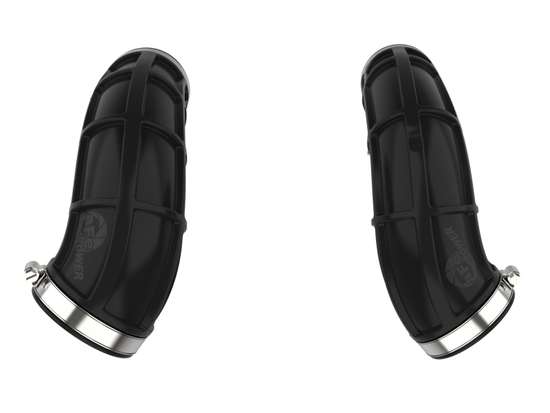Designed to eliminate airflow restrictions, these turbo inlets significantly enhance the volume of air delivered to the turbos when combined with any aFe POWER air intake system. They ensure a smooth, minimally restricted airflow from the intake system to the turbos, maximizing power output. Our turbo inlets feature durable silicone pipes, fortified with molded ribs to prevent wear and degradation. These flexible pipes create a direct, secure connection between the aFe POWER air intake tubes and the turbos, ensuring optimal performance. Installation is straightforward, with all necessary clamps and hardware included. We provide high-quality stainless steel SmartSeal clamps to ensure a durable, airtight seal that maintains integrity over time.. aFe Power 22-24 Toyota Land Cruiser (J300) / 22-24 Toyota Tundra V6-3.4L (tt) Turbo Inlet Pipes. Turbo Inlet Pipes Black Toyota Tundra/ Land Cruiser 22-25 V6-3.4L (tt). Black Silicone Reinforced Pipes Connects To the Factory Turbos. Improves Air Flow To The Turbos For Maximum Power. Direct Fit Install with No Modifications Required. Turbo Inlet Pipes Black. Takeda Turbo Inlet. Turbo Inlet
