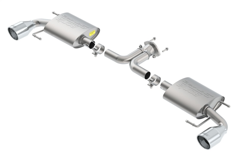 System features polished T-304 stainless steel tips. Borla(r) Cat-Back(tm) & Axle-back exhaust systems feature patented straight-through and multi-core technology designed to unleash hidden horsepower. Increased exhaust velocity adds power, driving excitement, fuel economy, and the distinctive Borla(r) Sound of Power respected by motoring enthusiasts everywhere. Each system is built from premium T-304 stainless steel, superior to T-400 series knockoffs (such as 409), to give you the absolute best in performance and durability. Ultra-smooth mandrel bends ensure maximum flow & power, and precision computer-controlled CNC manufacturing ensures an accurate fit. Best of all, Borla(r) stands behind every system with a Million-Mile Warranty. Just what you'd expect from the world's most experienced (and most winning) exhaust brand.. S-Type Axle-Back Exhaust System For 2014-2018 Mazda 3 2.0L/ 2.5L 4 Cyl.. Automatic/ Manual Transmission Front Wheel Drive 5 Door Hatchback.. 2014-2018 Mazda 3 2.0L/ 2.5L 4 Cyl.. Automatic/ Manual Transmission Front Wheel Drive 5 Door Hatchback.. Borla 14-16 Mazda 3 2.0/2.5L AT/MT FWD S-Type Cat-Back Exhaust Single Split Rear Exit. Axle-Back Exhaust System - S-Type. Borla Axle-Back System. Exhaust System Kit. Axle-Back System